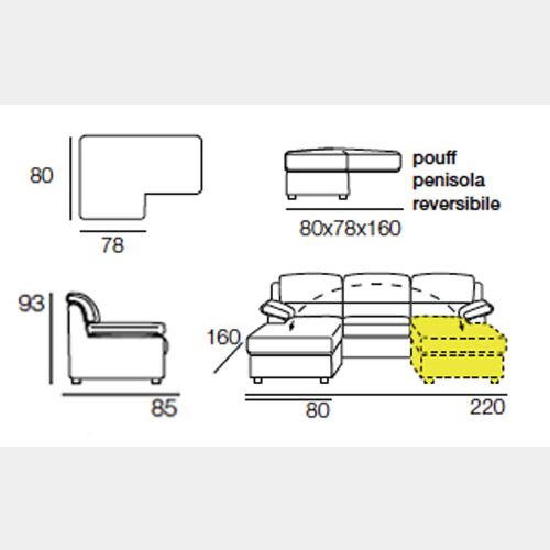 Il Divano Ginevra in tessuto Bianco con penisola reversibile è situato nella categoria Divani con Penisola. L'arredo adatto per il tuo soggiono moderno è composto da 3 sedute e un pouff penisola reversibile posizionabile sia a destra sia a sinistra. La struttura è in legno di abete e truciolare con imbottitura in poliuretano. Molleggio realizzato con nastri elastici. Cuscini di seduta e schienale in poliuretano espanso con fibra acrilica.
