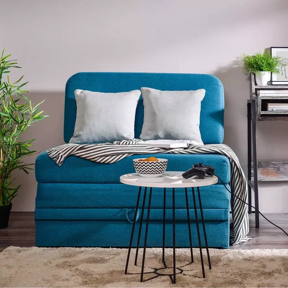 Divano letto 1 posto tessuto Azzurro con cassettone