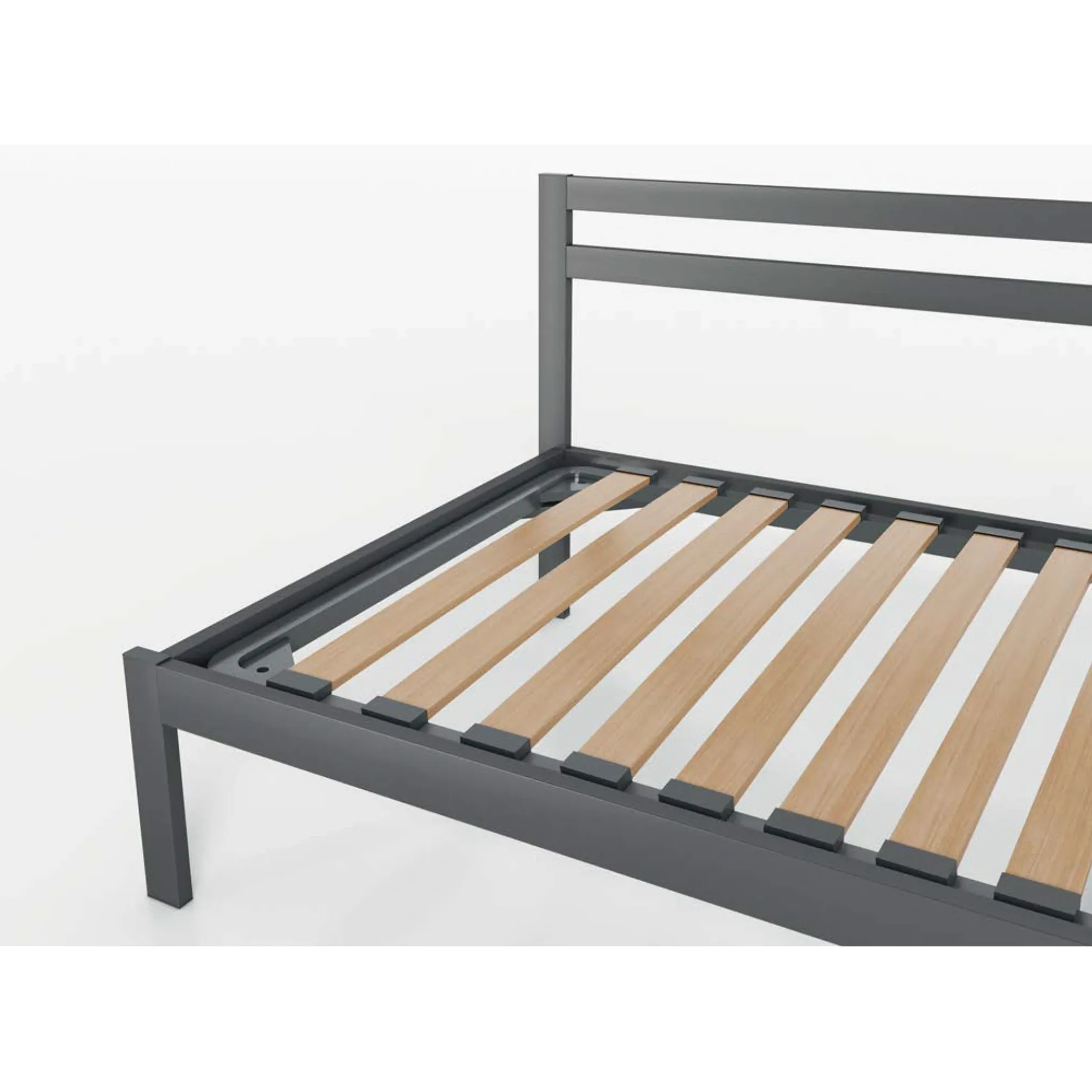 • Rete: a doghe di legno con telaio in metallo, verniciatura a polveri epossidiche colore grigio.