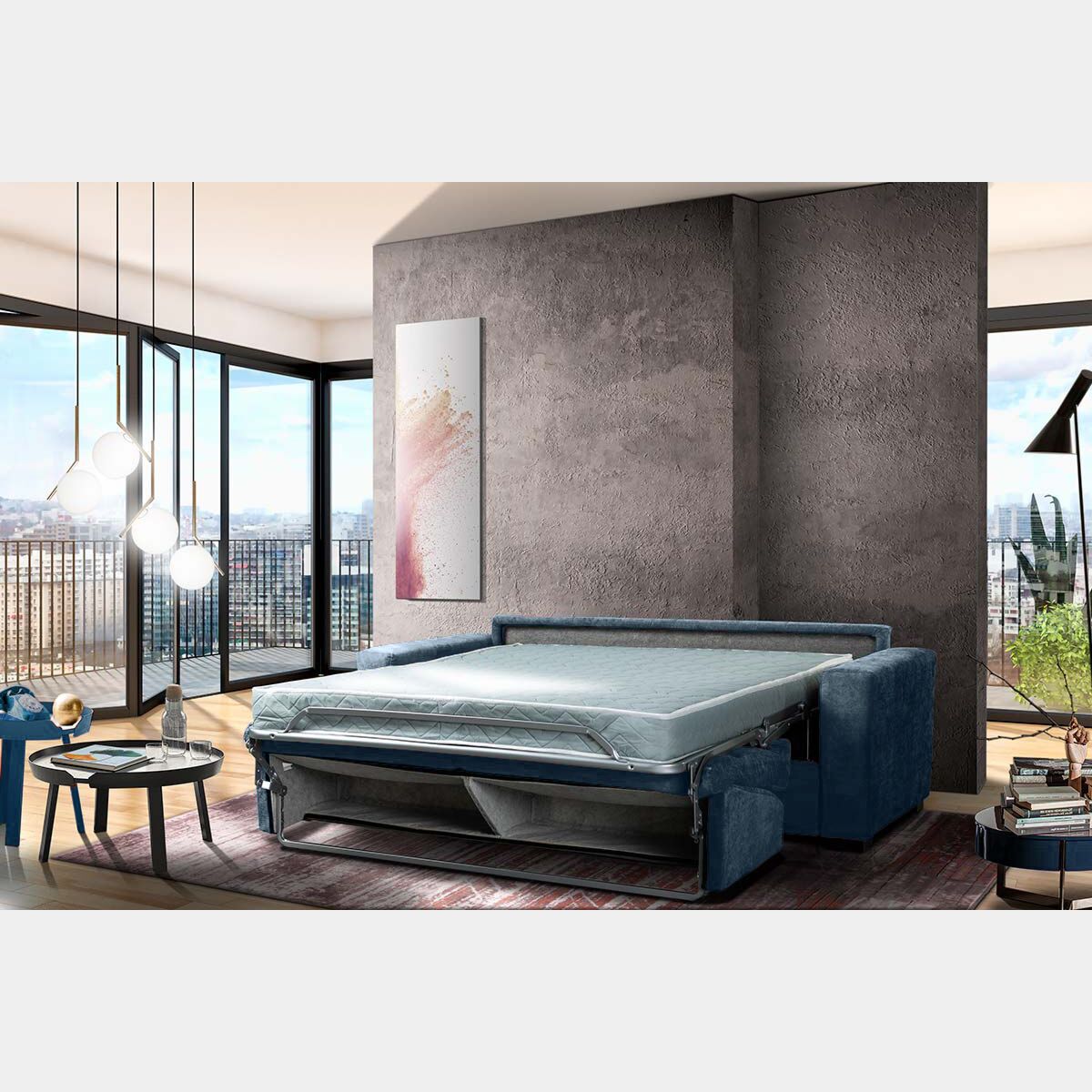 Il divano letto è completamente sfoderabile e una volta aperto ha un'ingombro di 207 cm. Al suo interno il divano letto ha un materasso con densità del poliuretano espanso 20. Materasso con fodera rimovibile e fatto con una lastra di poliuretano