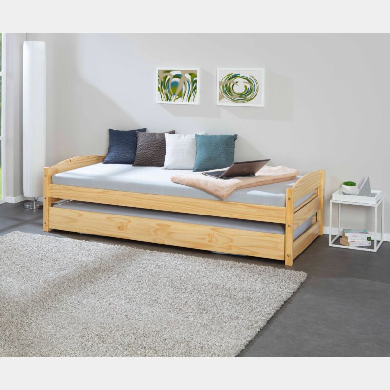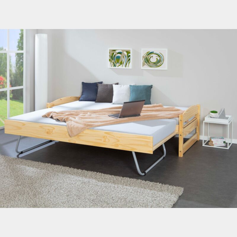Letto singolo con secondo letto estraibile in legno massello ad estrazione che arriva alla pari del primo.