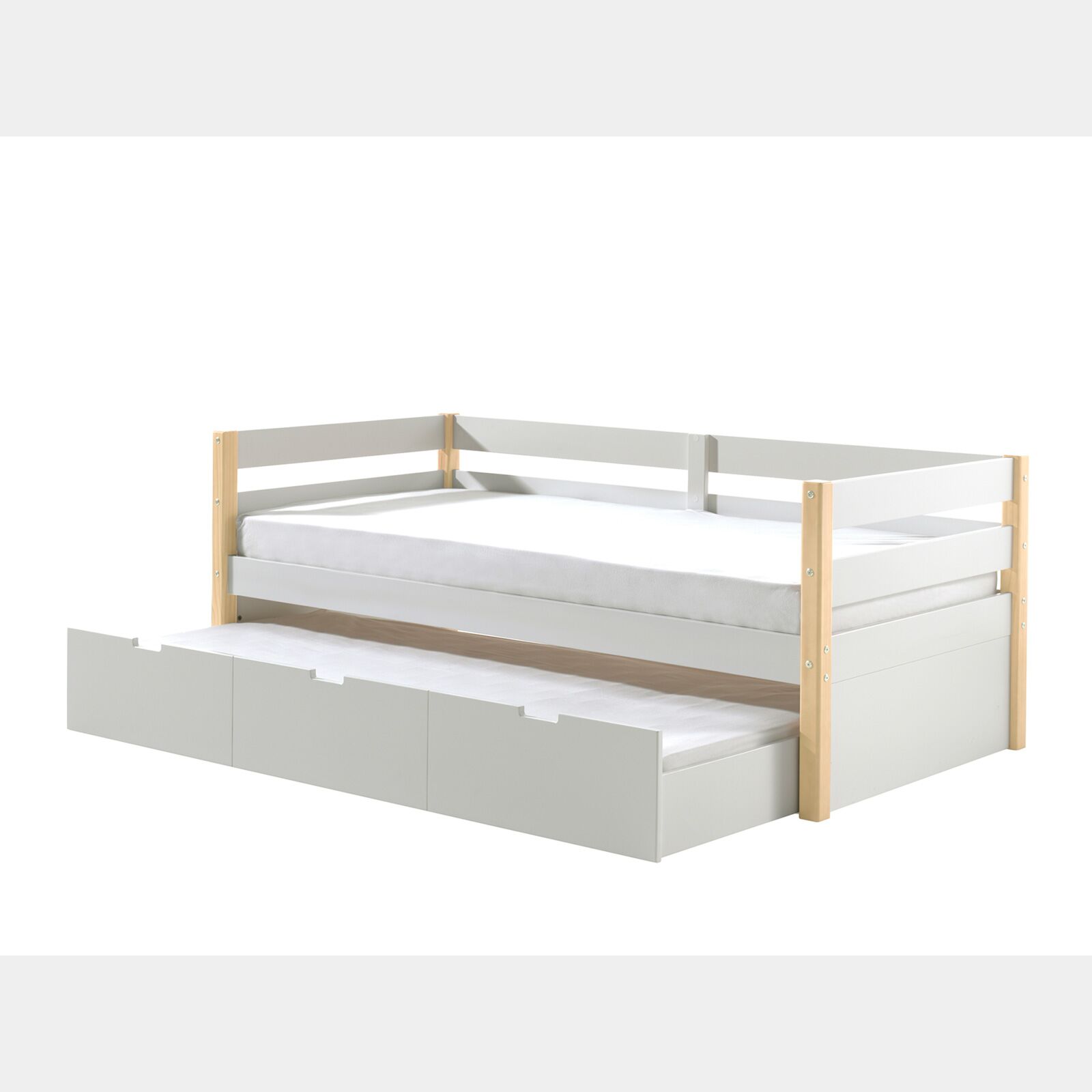 Divano letto con secondo letto estraibile in legno massello, Bianco e Pino naturale