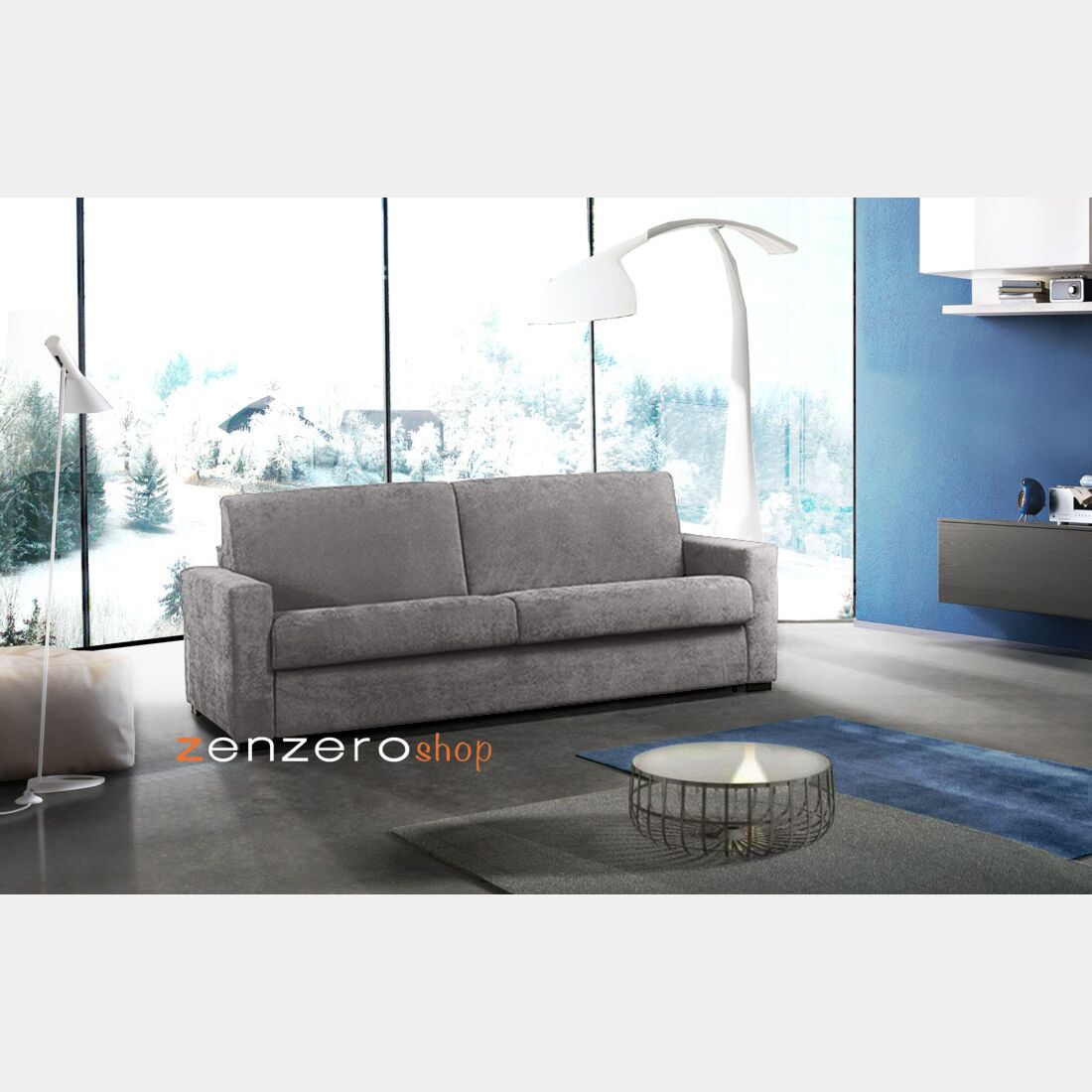 Il divano letto è completamente sfoderabile e una volta aperto ha un'ingombro di 207 cm. Al suo interno il divano letto ha un materasso con densità del poliuretano espanso 20. Materasso con fodera rimovibile e fatto con una lastra di poliuretano.