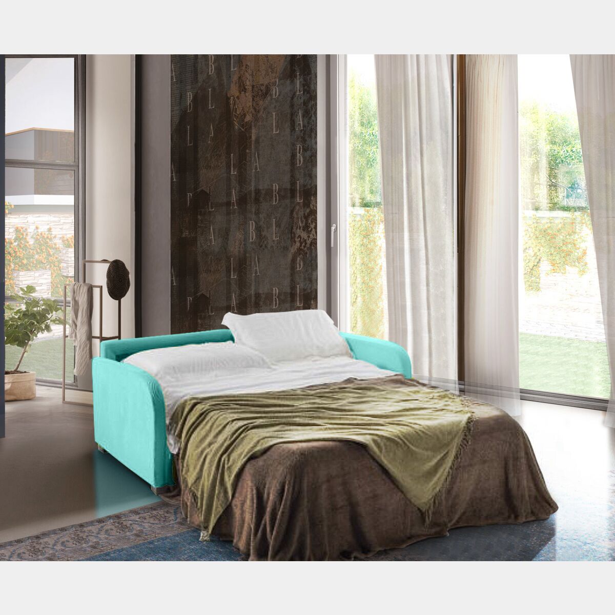 Divano letto 3 posti Charlie, finitura tessuto Cielo