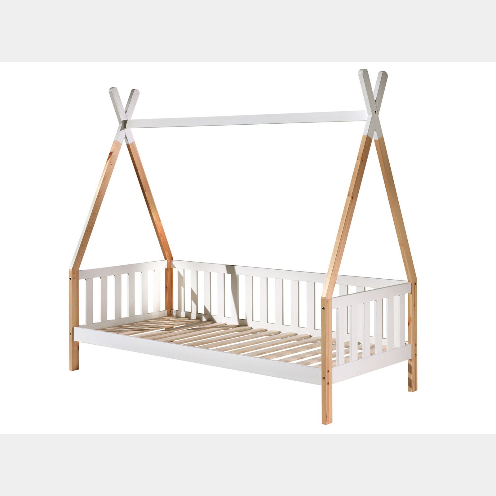 • Materiale: il lettino è realizzato in pino massello laccato bianco e naturale