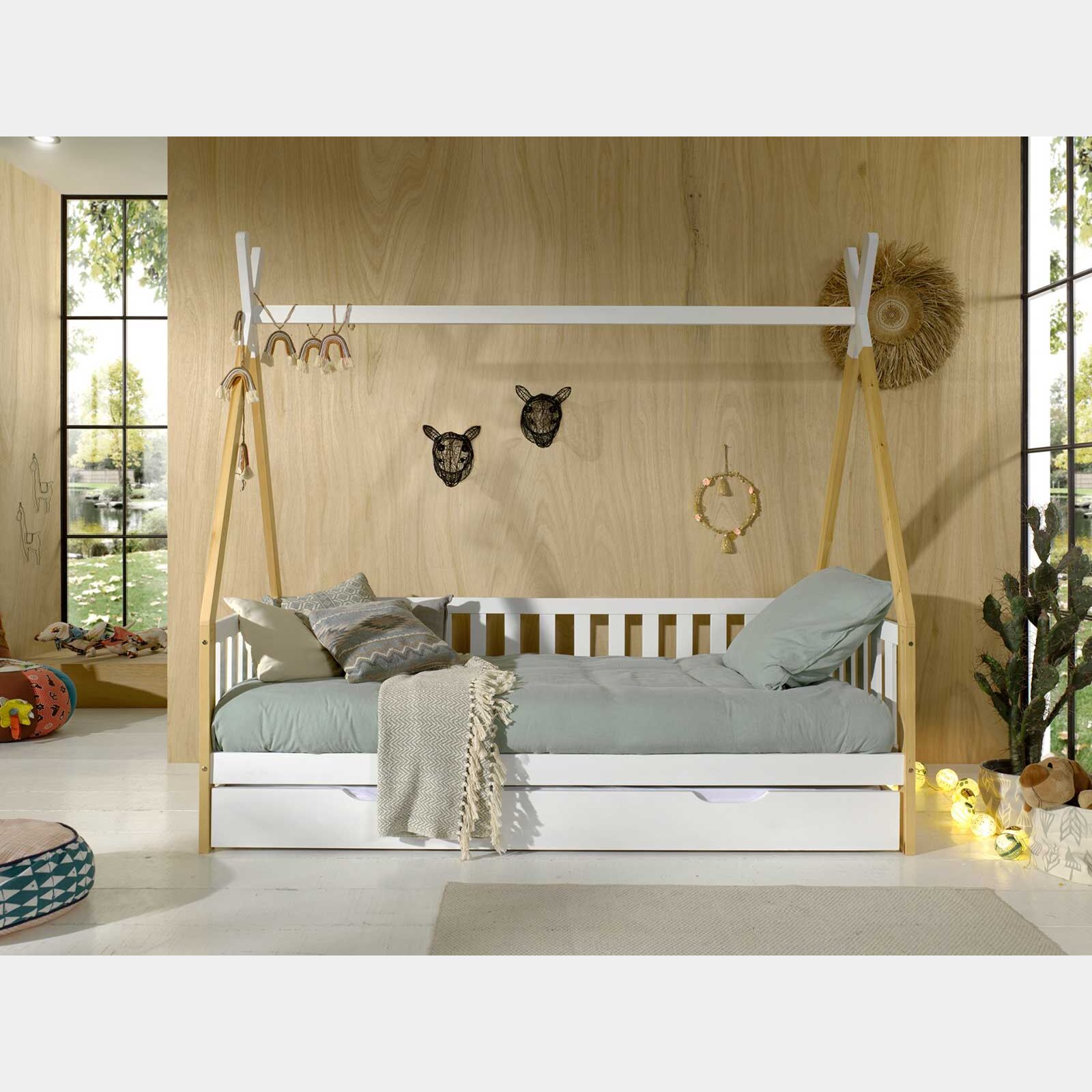 Divano letto montessoriano per camerette in Pino naturale e Bianco laccato