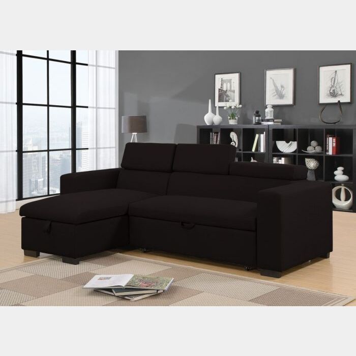 Divano letto trasformabile Primus con penisola contenitore in semipelle nera