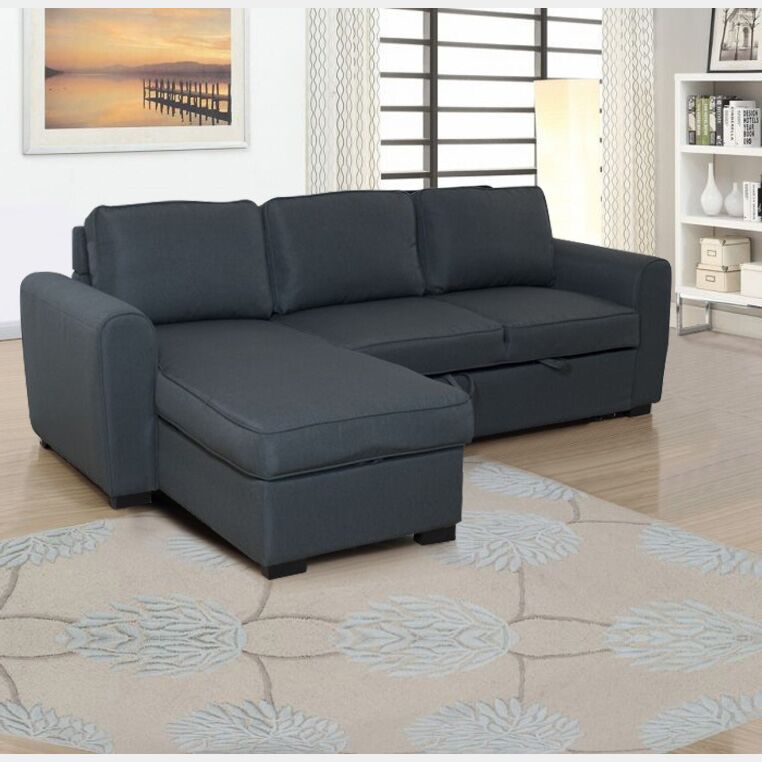 Divano letto in tessuto grigio scuro con penisola