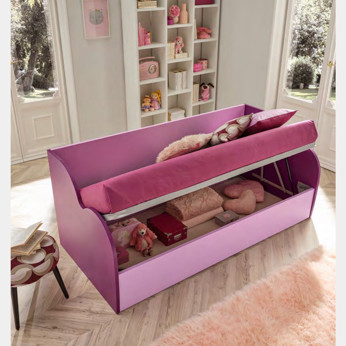 Divano letto Air Moretti Compact con contenitore, finitura Lampone e Lilla