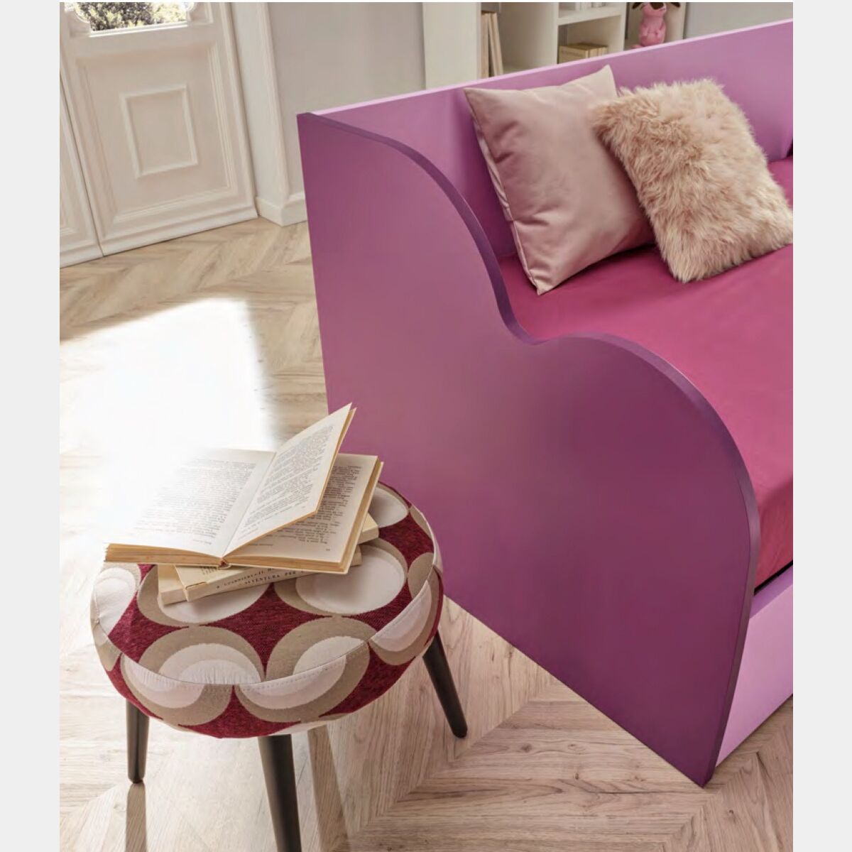 Bellissimo il divano letto Air caratterizzato da un design avvolgente e giocoso. La struttura è vivacizzata dall'abbinamento di due colori: lampone e lilla (laccato).