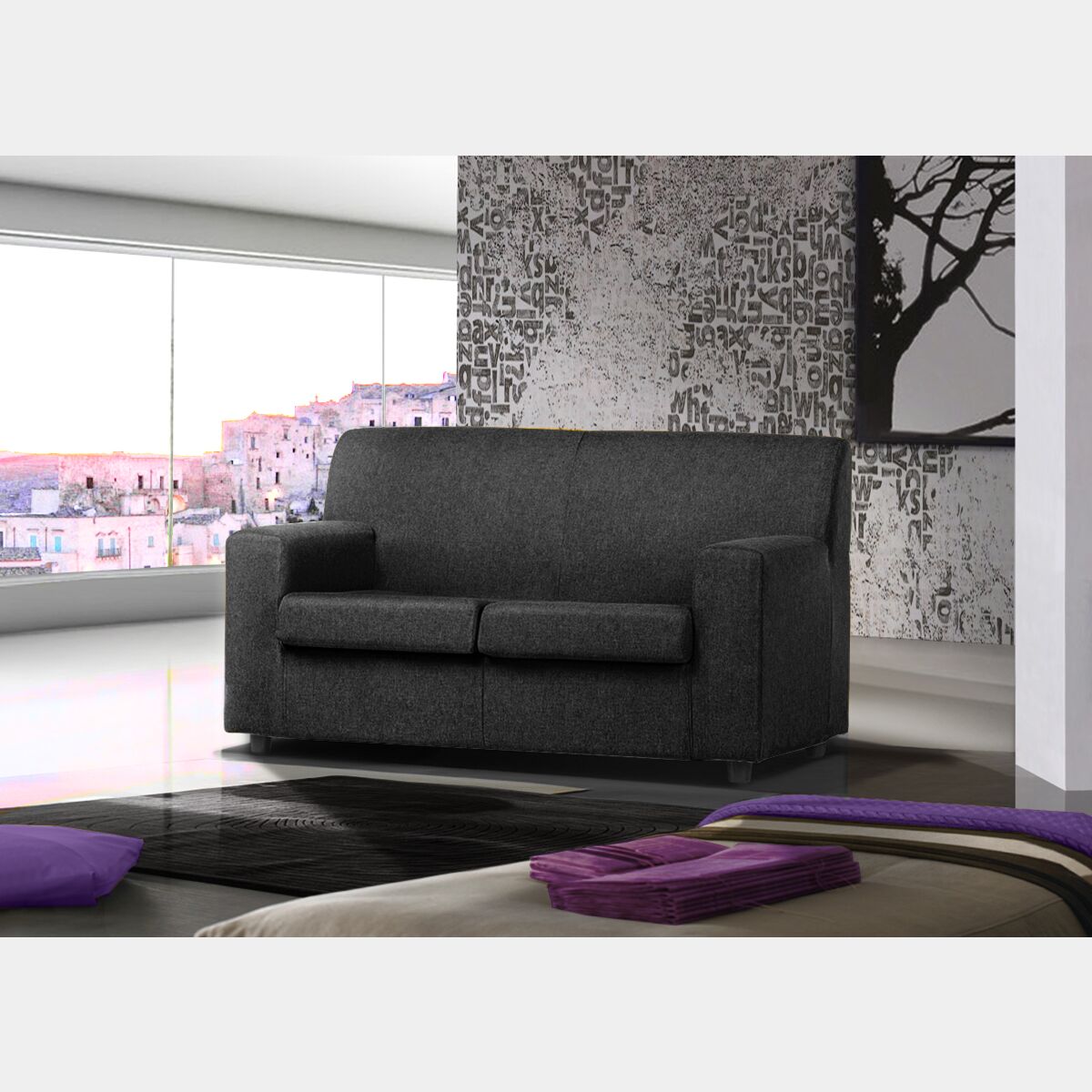 Divano moderno 2 posti in tessuto Antracite