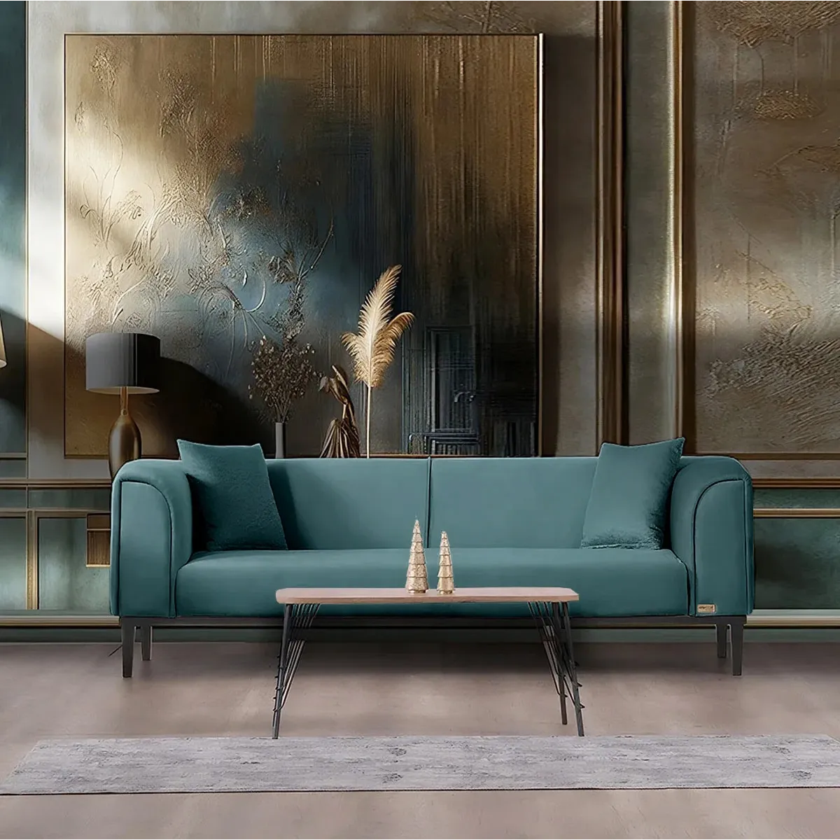 Il divano a tre posti in tessuto Petrolio risulta un verso e proprio complemento d'arredo per il living. Lo stile semplice e pulito assicura una perfetta adattabilità ad ambienti moderni, minimal o contemporanei.