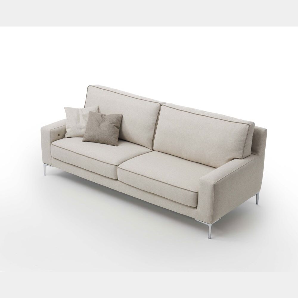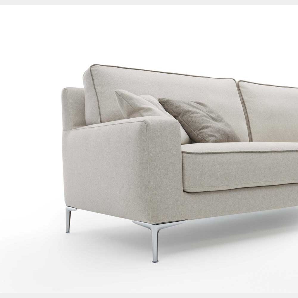 Il Divano Tor in tessuto Burro con bordino Grigio di serie fa parte della collezione Ginevra. L'arredo adatto per il tuo soggiono moderno è composto da 2 sedute e una struttura in legno di abete e truciolare con imbottitura in poliuretano, rivestita in tessuto protettivo accoppiato. Il molleggio è realizzato con nastri elastici. I cuscini delle sedute sono in poliuretano espanso con fibra acrilica, indeformabili con densità 25, mentre i cuscini degli schienali sono in fiocchi di fibra. Il divano ha una presa USB di serie posizionata sul fianco interno del bracciolo sinistro (a richiesta si può realizzare senza) in modo da poter ricaricare i propri device comodamente. Le gambe del divano Made in Italy sono in metallo cromato con altezza 15 cm.