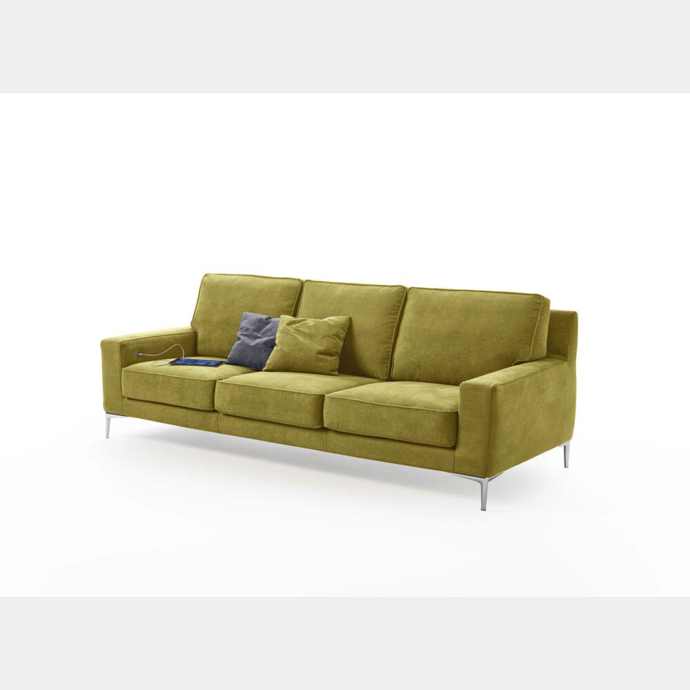 Divano Tor a 3 posti con presa USB integrata, tessuto verde salvia
