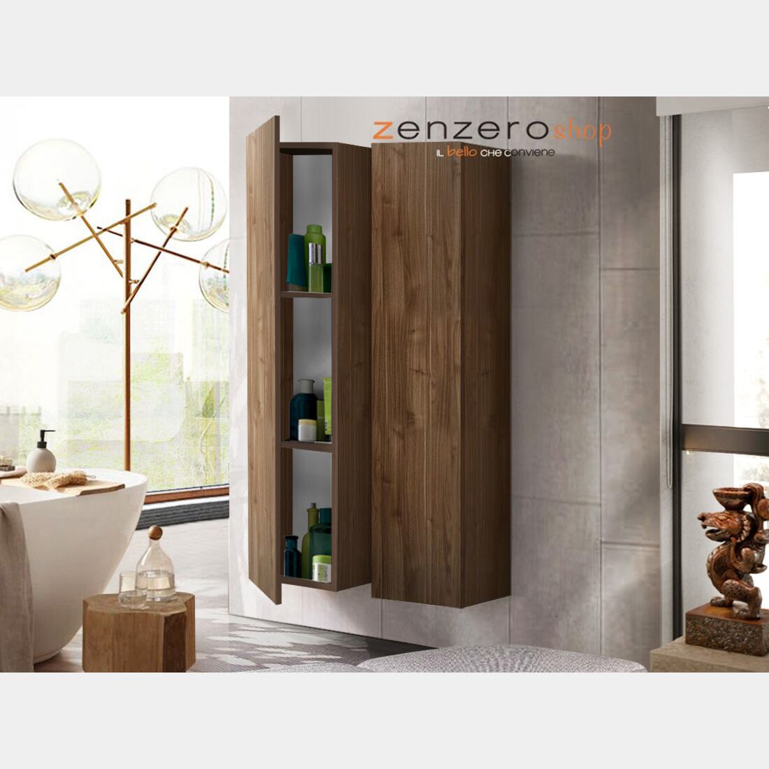 Il prodotto è una coppia di colonne verticali sospese, dal design moderno e funzionale, pensato per arredare il vostro bagno moderno. Le colonne da bagno hanno sia scocca che frontali in finitura Noce Dark. All'interno delle due colonne da bagno ci sono 2 mensole che dividono lo spazio in 3 parti uguali. La composizione mobile bagno è disponibile anche in altre finiture come: effetto marmo nero, bianco lucido, rovere stelvio, beton, ossido, grigio lucido, giallo, rosso e blu.