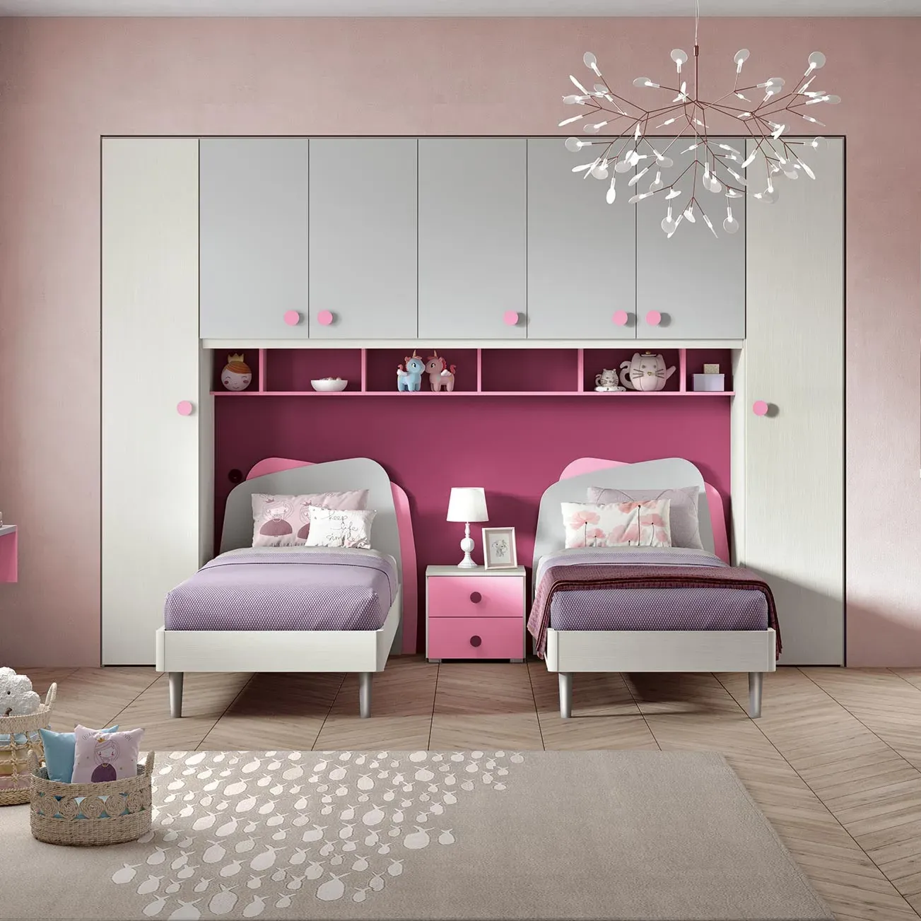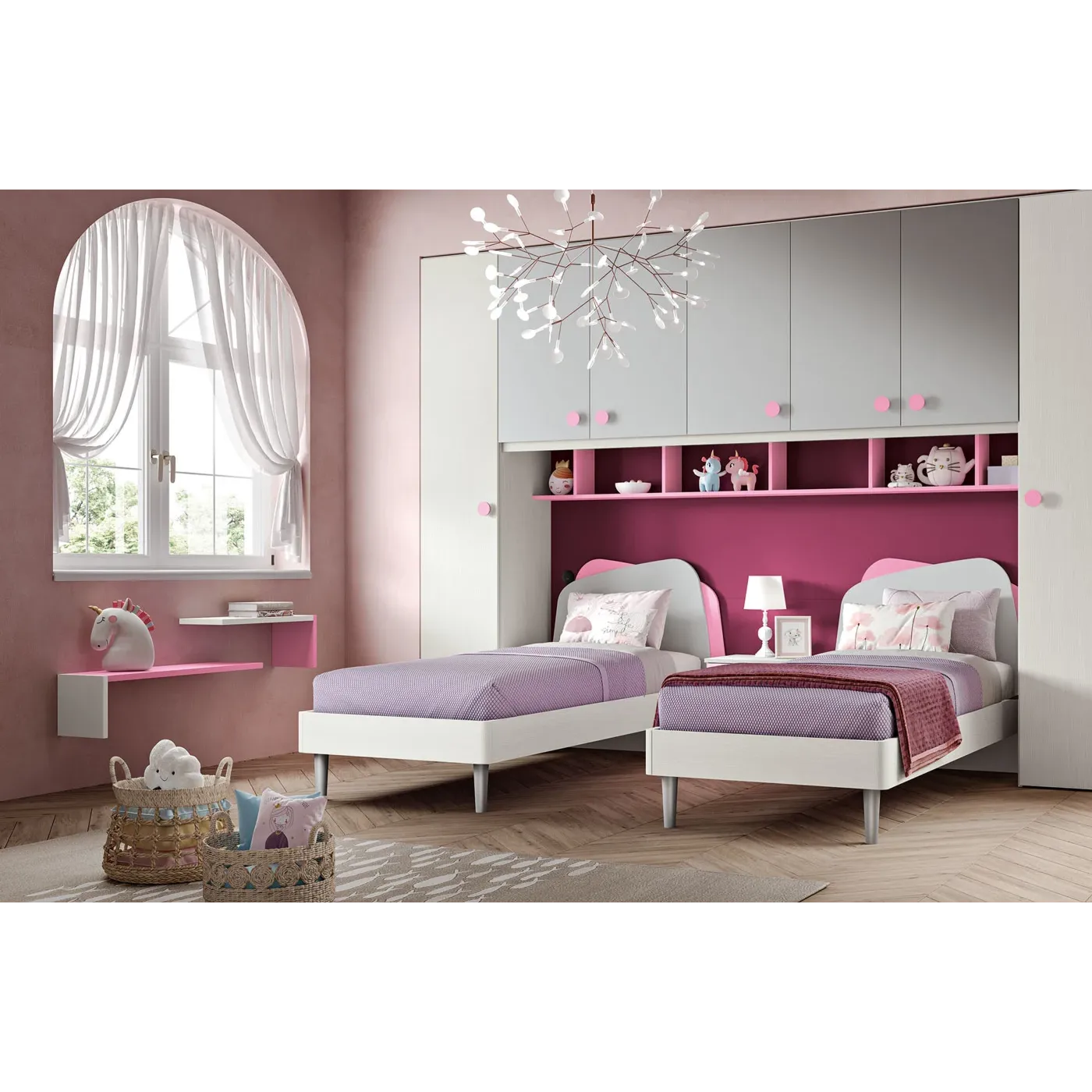 Doppio ponte camerette con letti singoli, Kiri, Grigio, Cranberry, Ortensia
