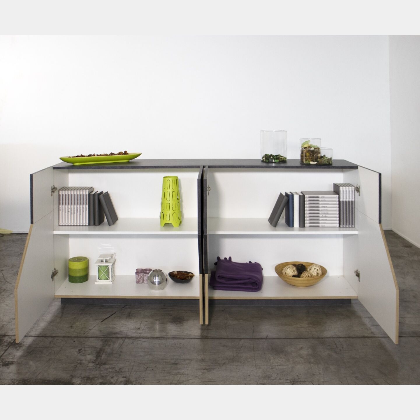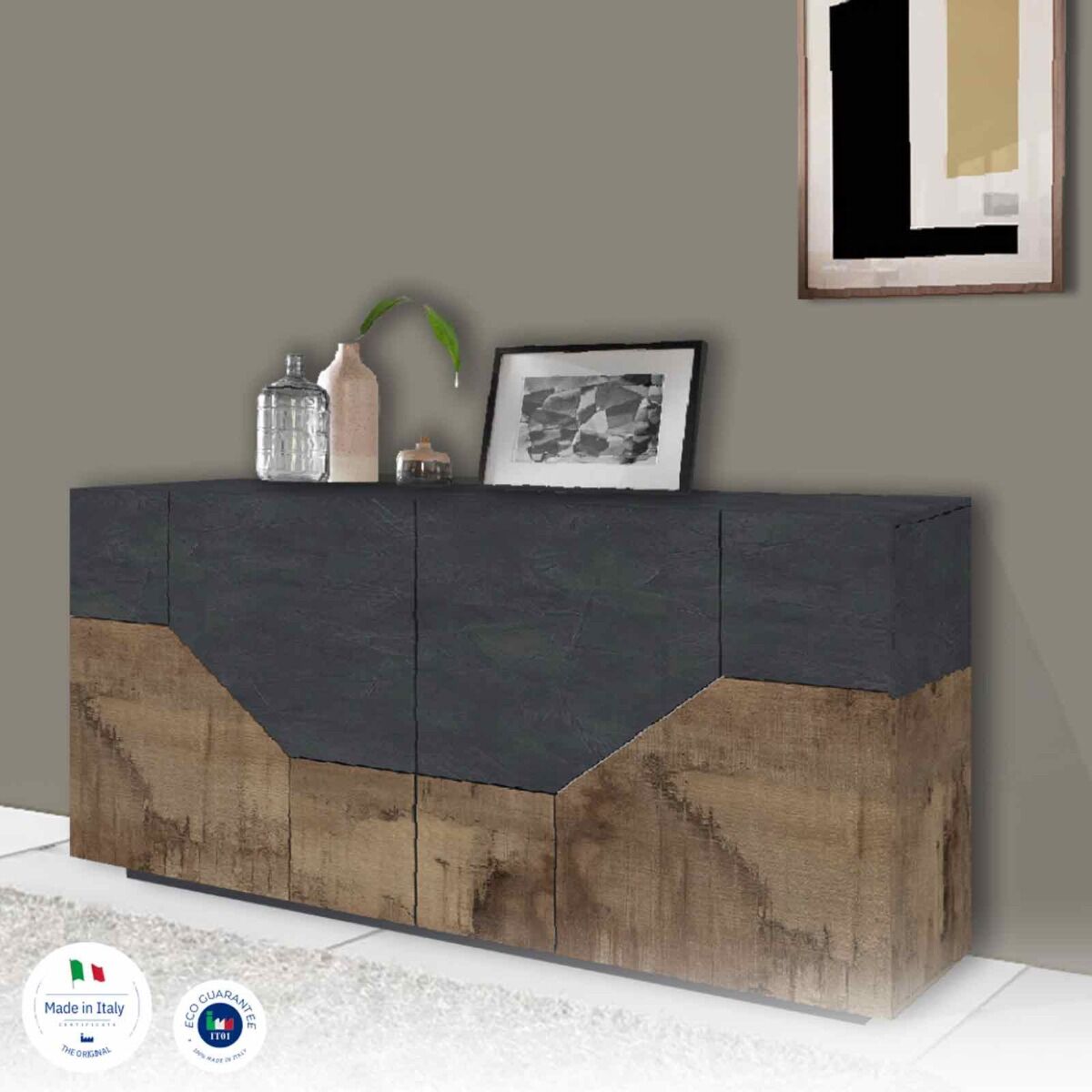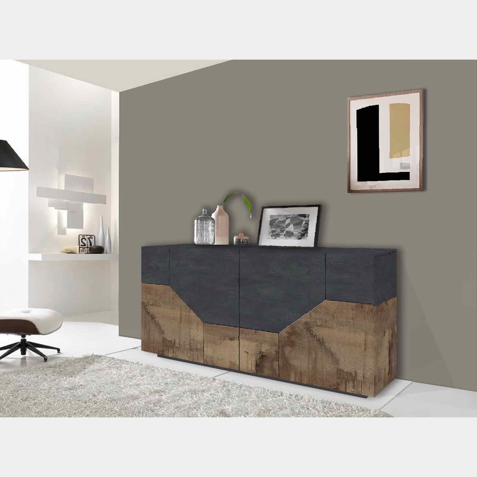 Economica Madia geometrica di design 4 ante, Ardesia e Pero