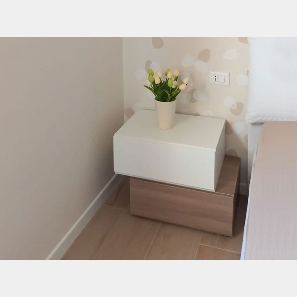 Elegante e moderno Comodino particolare con 2 cassetti di alta qualità in finitura Frassinato bianco e Olmo