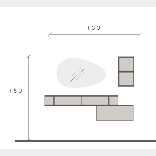 La Parete attrezzata finitura Bronzo è stata composta per offrire un ampio spazio di appoggio senza però rinunciare all'estetica, grazie infatti alla sua geometria risulta moderna e innovativa, si può adattare a tutti gli ambienti come zone giorno, studi e ingressi.