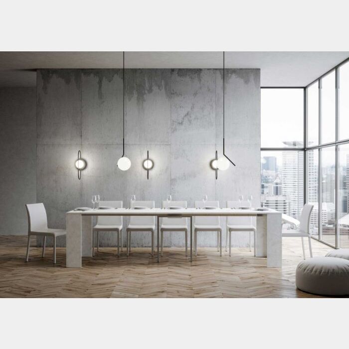 Anche alla sua massima estensione la consolle rimane stabile e robusta. Disponibile nelle finiture: bianco spatolato e antracite spatolato. (Le allunghe sono della stessa finitura del piano)