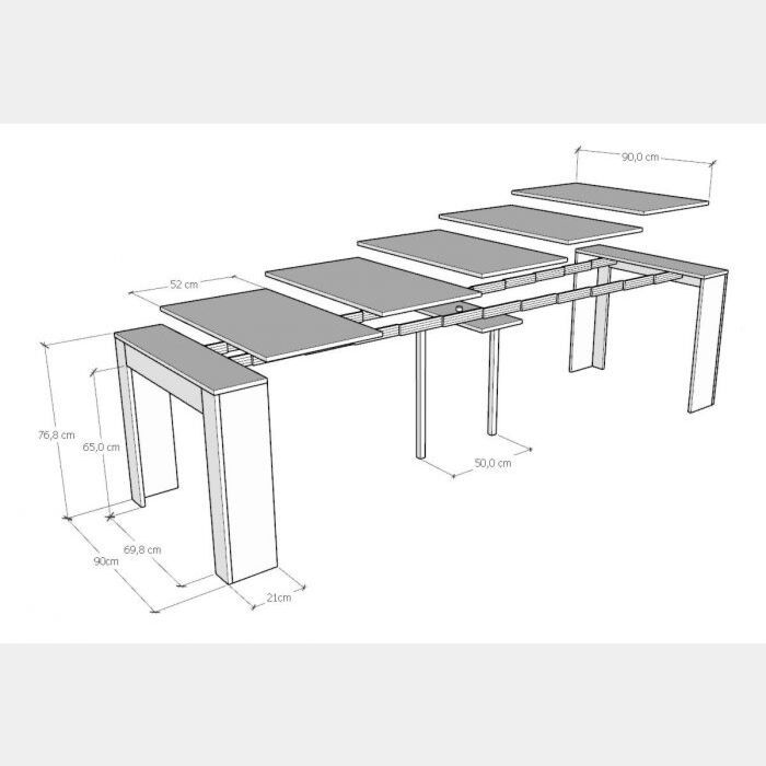 Una consolle allungabile economica e conveniente dalla linee semplici e pulite, dotata di cinque allunghe da 52 cm cadauna e si trasforma in poche mosse in un pratico tavolo da pranzo da tre metri in grado di ospitare fino a 14 persone!