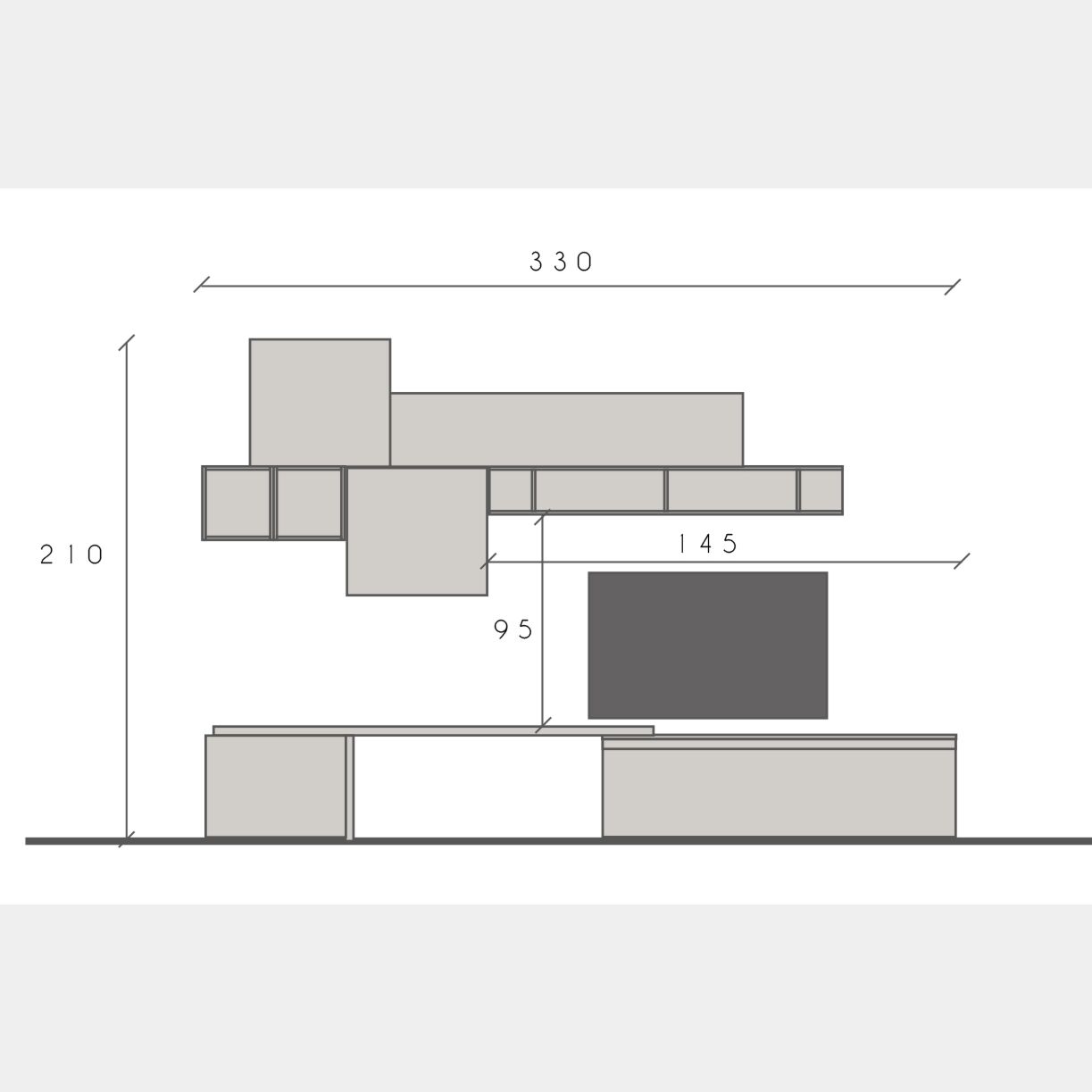 Misure totali: L.330 H.210 P.40
