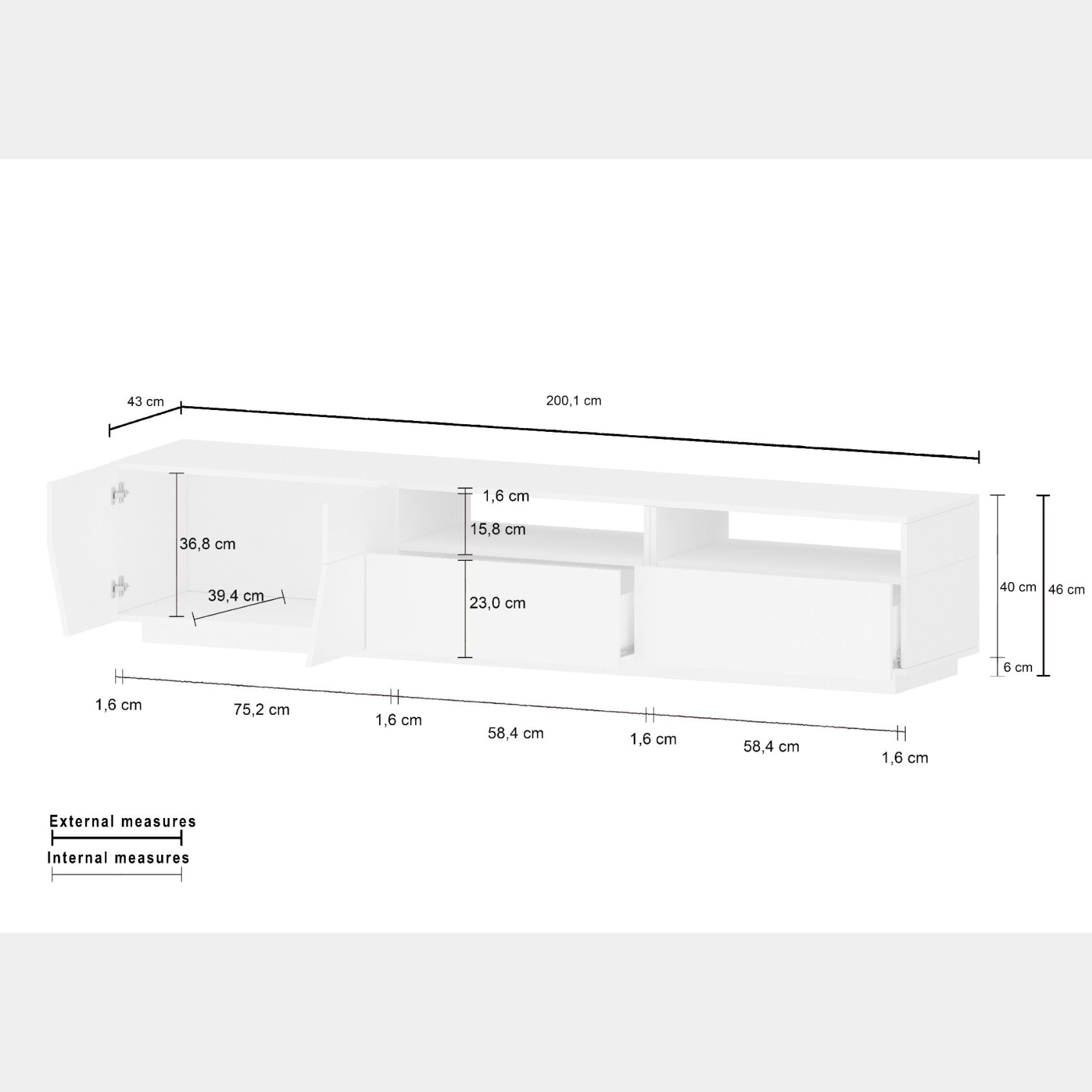 -Misure : L.200 P.43 H.46