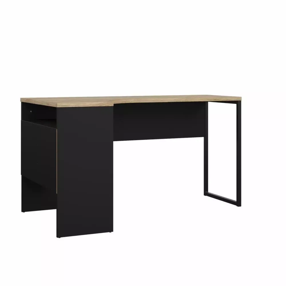 La scrivania possiede due cassetti, due gambe in acciaio e un scomparto aperto per un facile accesso agli oggetti essenziali. E' composta anche da due vani aperti con schienale chiuso, i quali sono in grado di assicurare uno spazio di lavoro funzionale. La scrivania angolare permette di lavorare in un luogo ben organizzato e capiente per riporre i propri documenti.