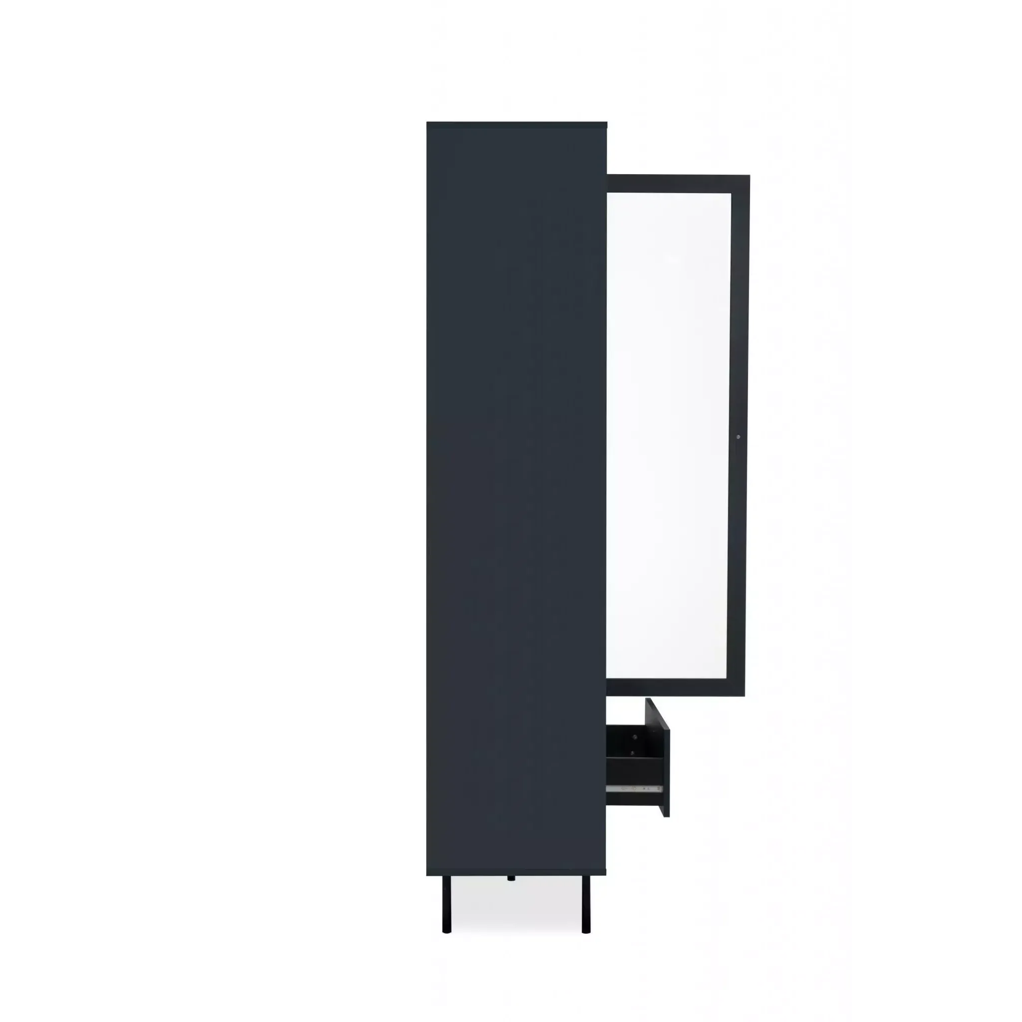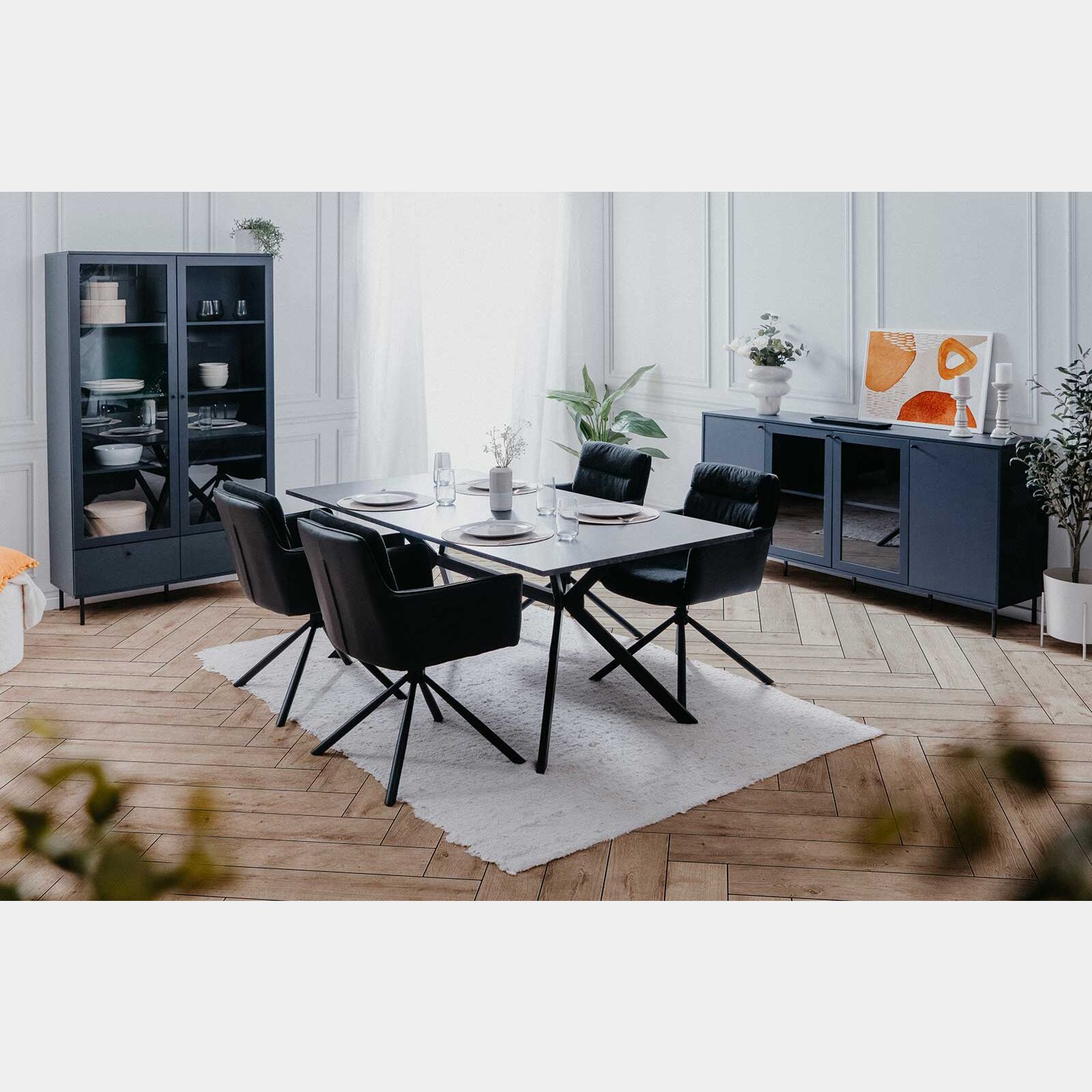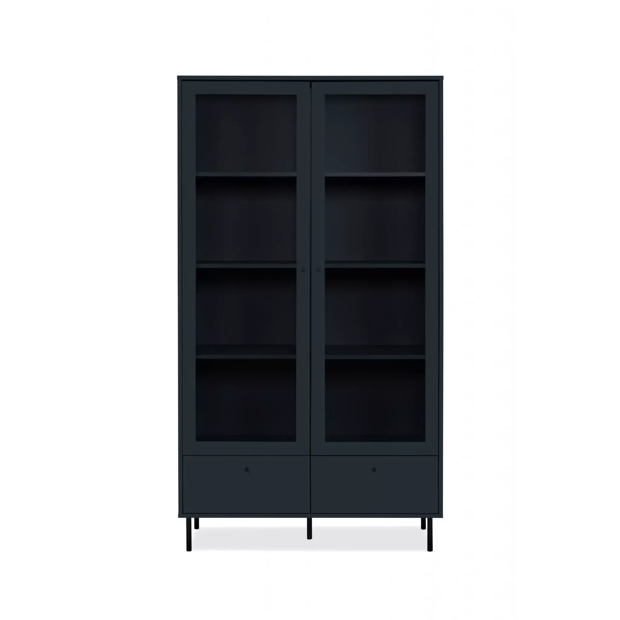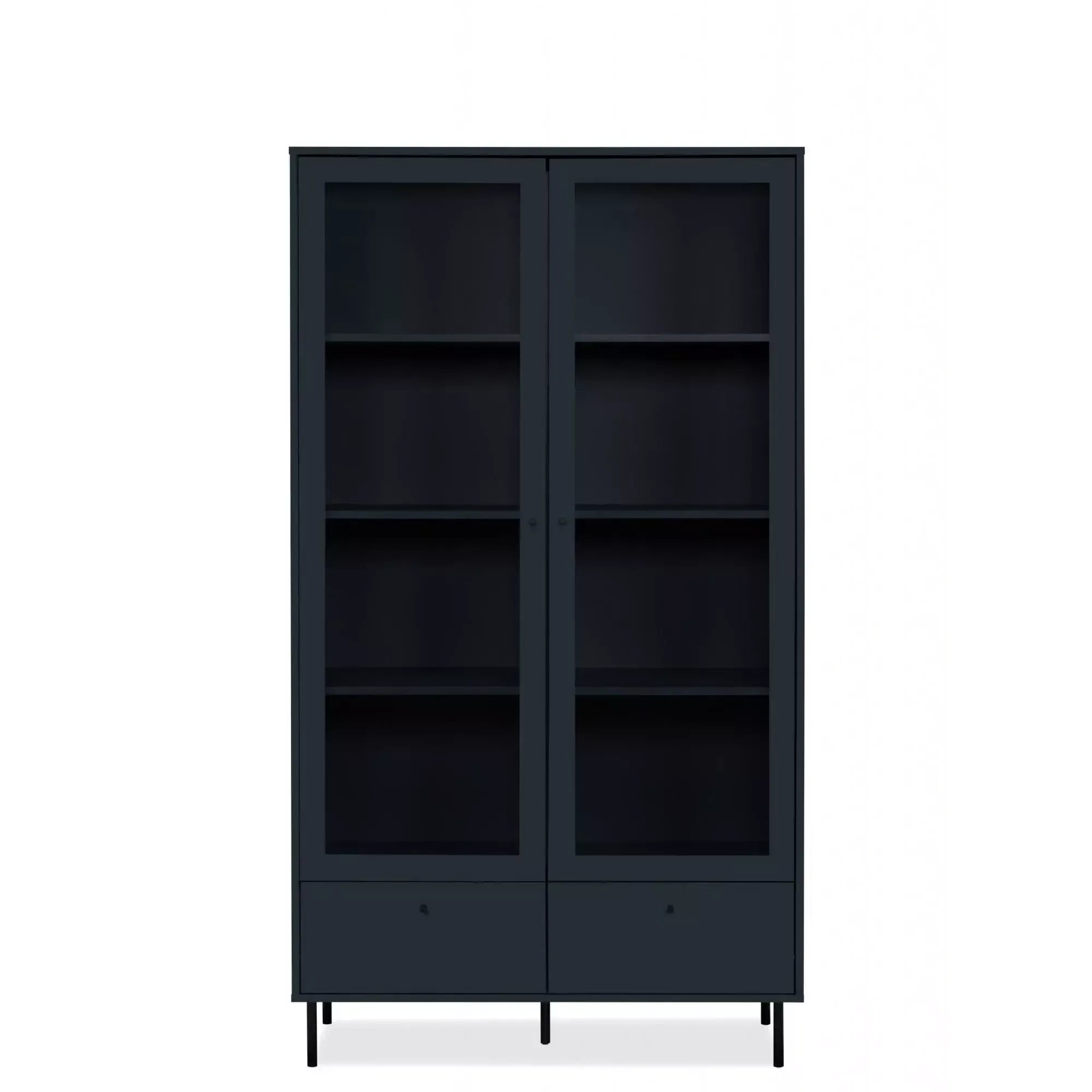 La vetrina è nella finitura Blu scuro, presenta 2 ante battenti con ripiani interni, offre un ampio spazio di appoggio interno e risulta pratica e funzonale.