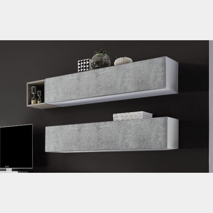 Elemento ribalta appeso, dal design moderno e funzionale, ideale per un arredamento informale e di sicuro impatto, di solida costruzione in finitura bianco e beton.