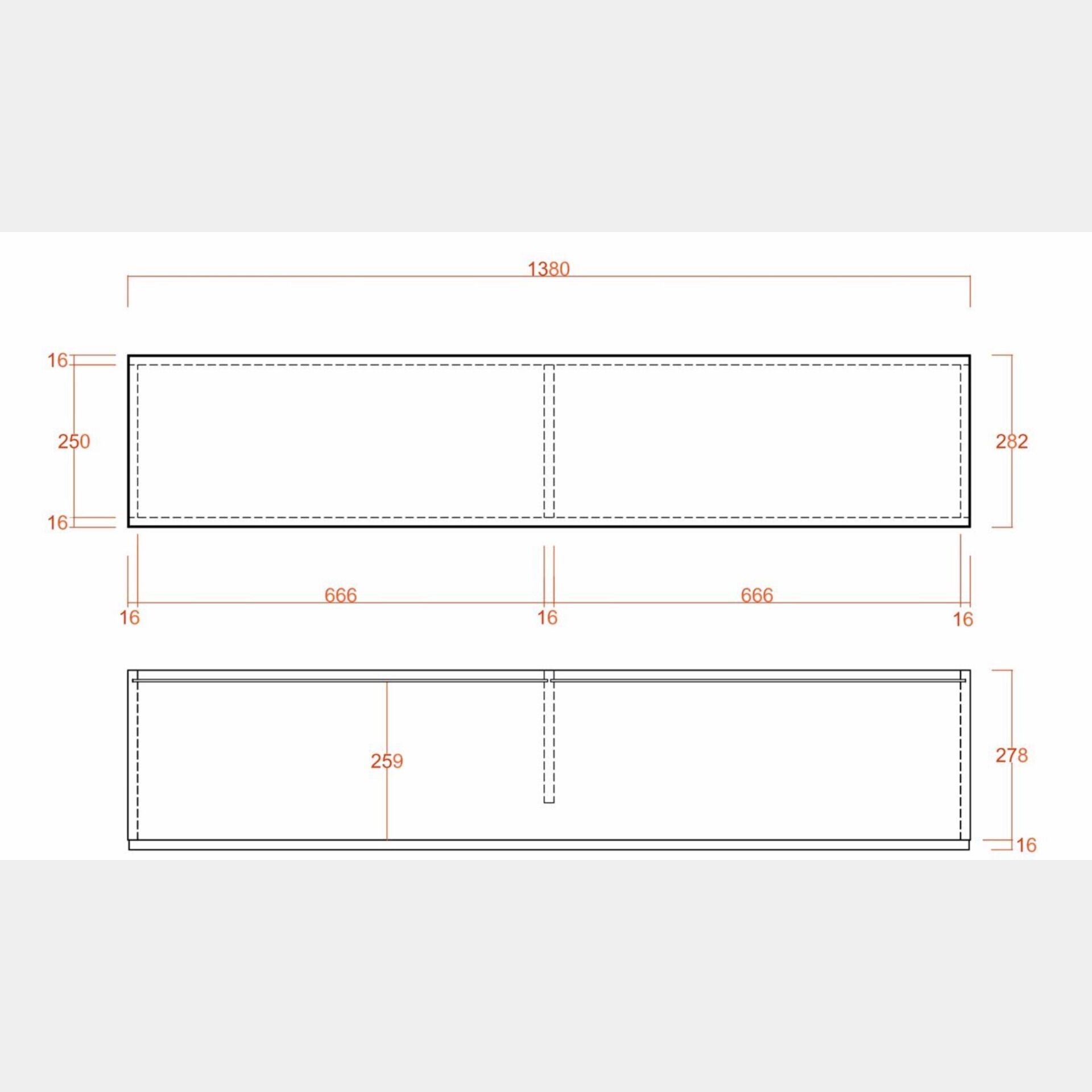 Elemento orizzontale ribalta/vasistas sospeso L.138 cm, disponibile in diverse finiture