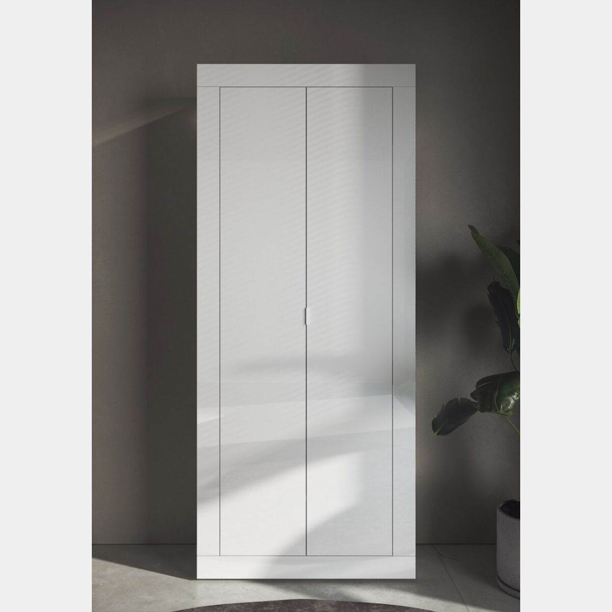 Una pratica soluzione a 2 ante, realizzata in finitura bianco lucido, con maniglie minimal.