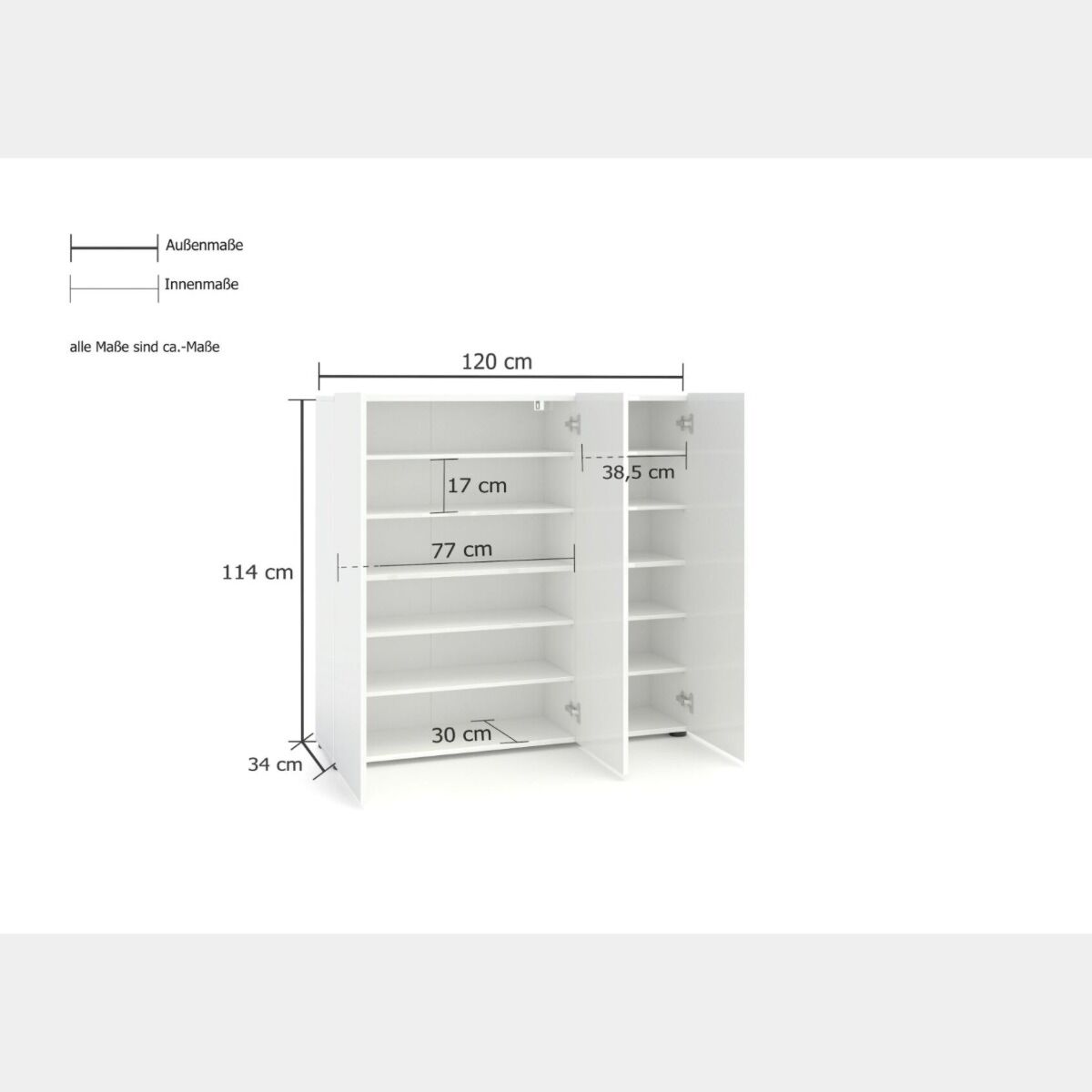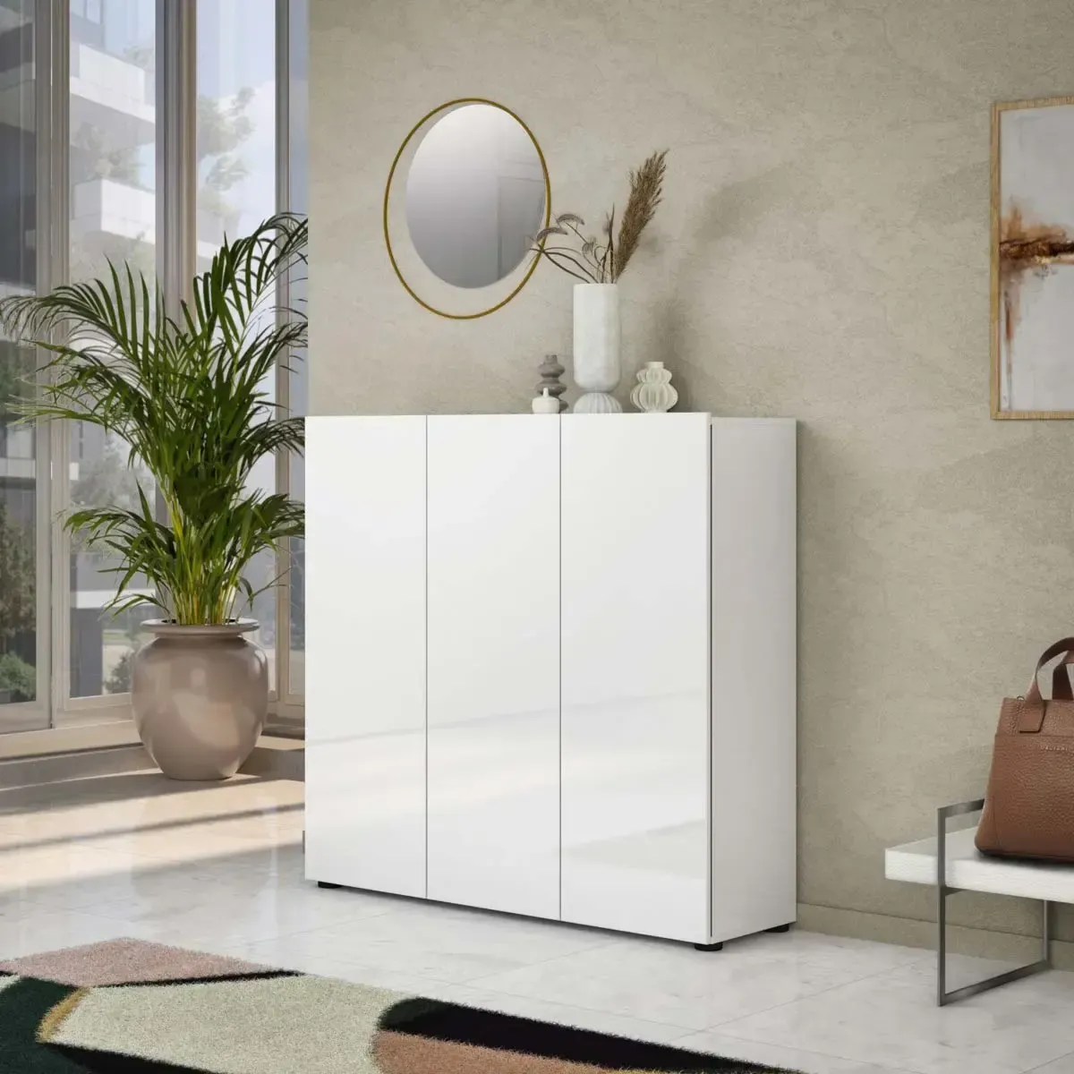- Madia elegante ed innovativa misure L.120 H.114 P.34 perfetta anche come scarpiera colore Bianco Lucido, perfetta per arredare ambienti con spazi ridotti.