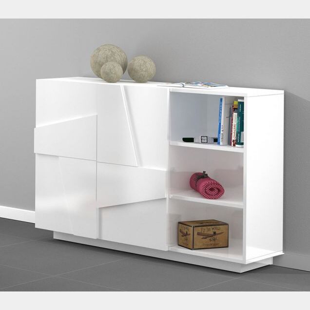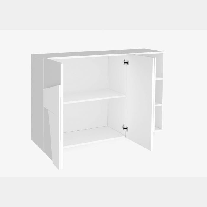 La madia moderna in finitura beton presenta due ante con disegni geometrici e 2 ripiani esterni. Grazie alla sua profondità questa madia risulta molto capiente e funzionale, all'interno è presente un ripiano centrale che crea 2 vani di 37.6 cm, i ripiani laterali possono essere utilizzati per riporre soprammobili e altri oggetti di arredo.
