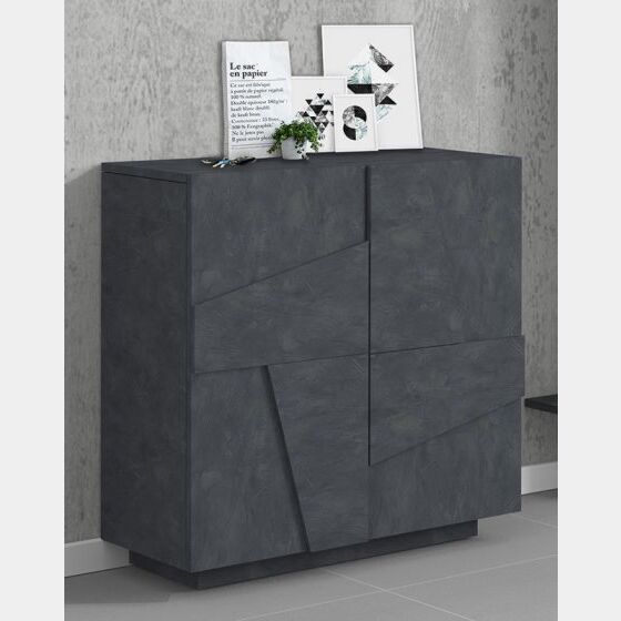 La madia moderna in finitura beton presenta due ante con disegni geometrici e 2 ripiani esterni. Grazie alla sua profondità questa madia risulta molto capiente e funzionale, all'interno è presente un ripiano centrale che crea 2 vani di 37.6 cm, i ripiani laterali possono essere utilizzati per riporre soprammobili e altri oggetti di arredo.