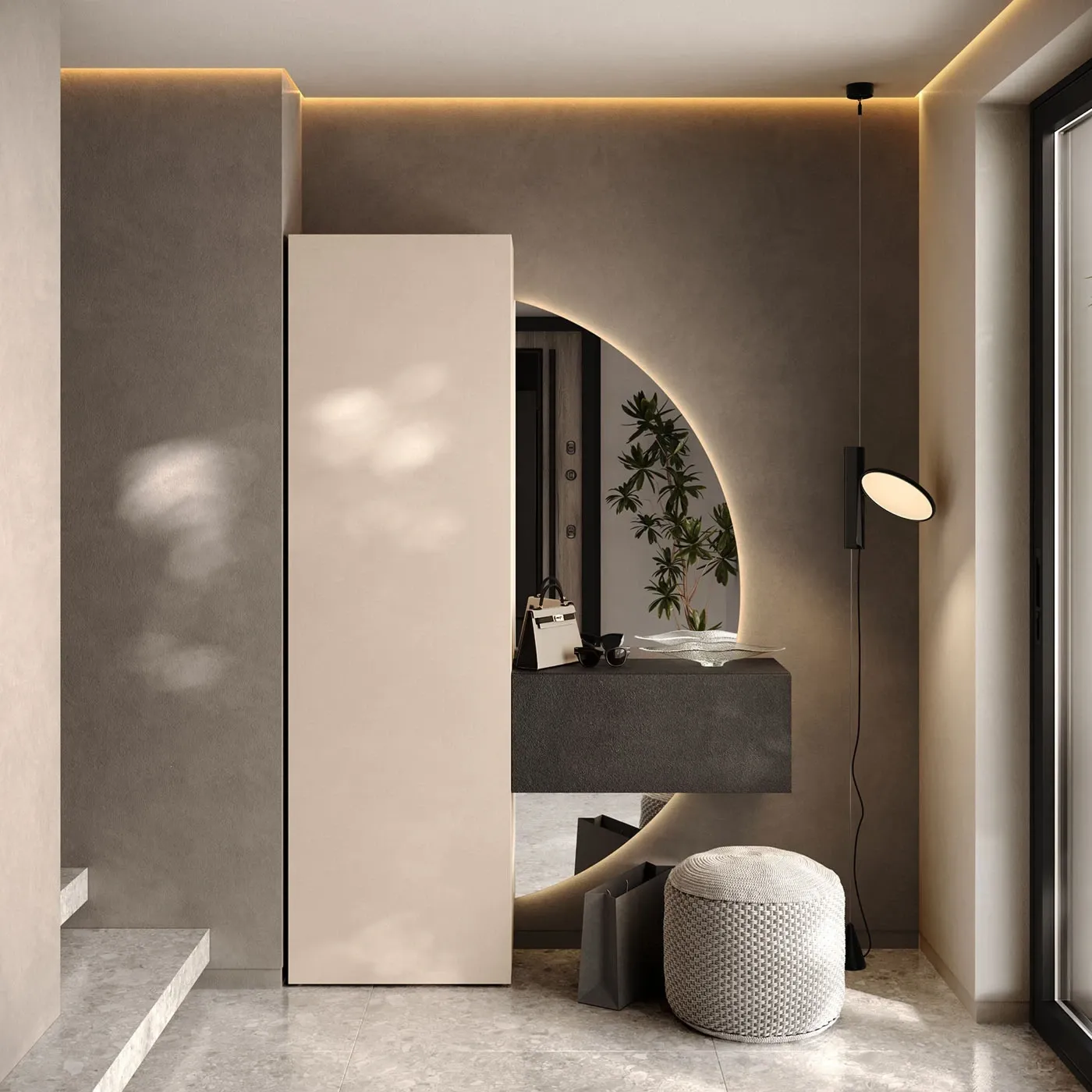 Ingresso con specchiera mezza luna Moon, ribalta e colonna, Cashmere e Lava