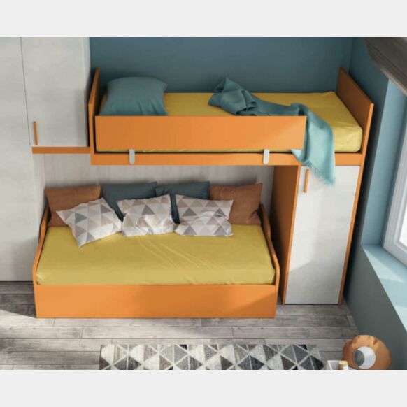 La cameretta moderna per ragazzi è la soluzione ideale per uno spazio ridotto. Dotata di 1 letto superiore e un divano letto, risulta molto pratica e comoda. Grazie alla possibilità di variare le finiture si può adattare a qualcunque zona notte rendondola luminosa e vivace.