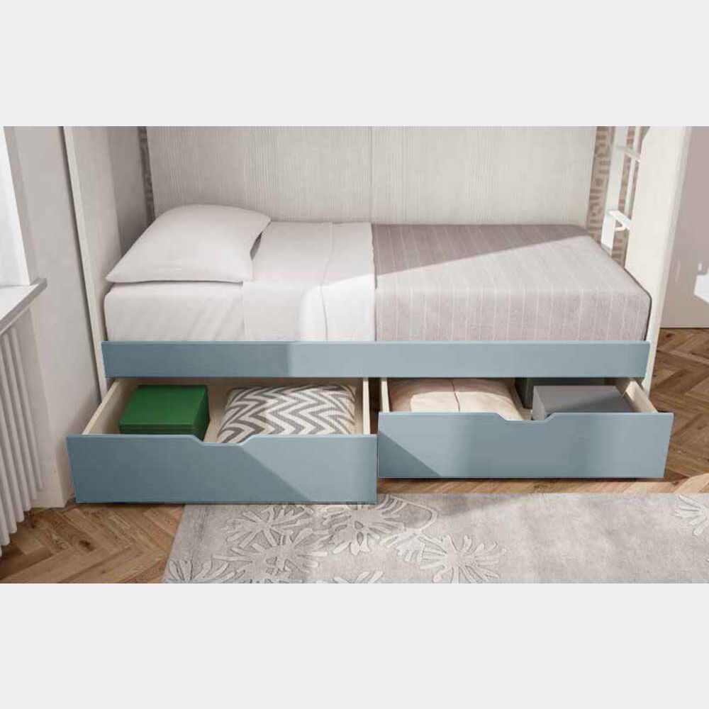 Sotto al letto sono presenti 2 cassettoni molto capienti, utili per posizionare oggetti e coperte.