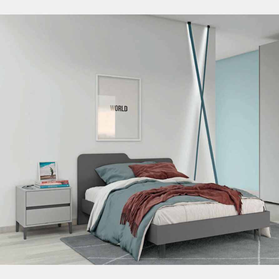 Letto una piazza e mezza moderno per la zona notte. Letto dal design moderno e ricercato. Testiera e giroletto sono in finitura Grigio dorian, dimensioni interne 122.1x195.