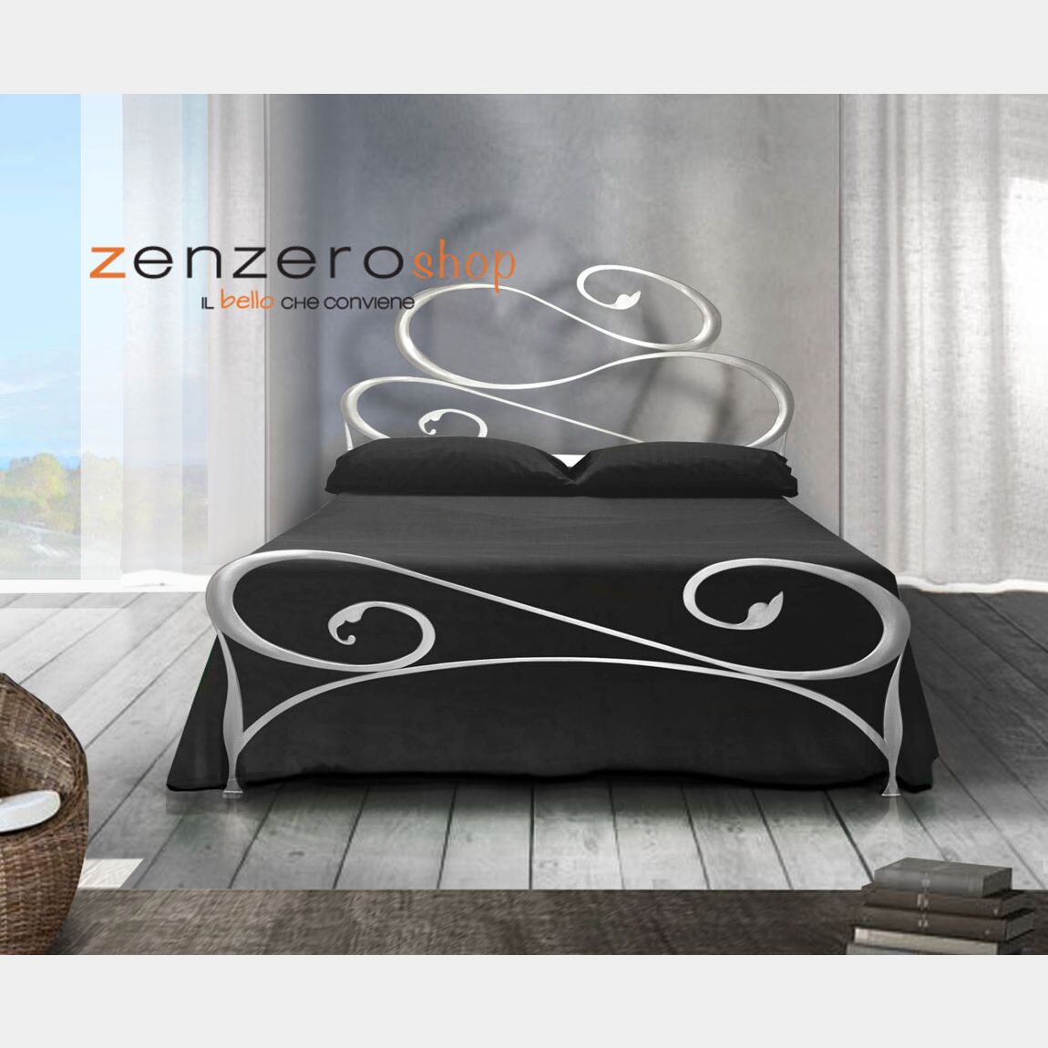 Letti in ferro battuto moderni, Letto matrimoniale Harry in finitura Argento lucido