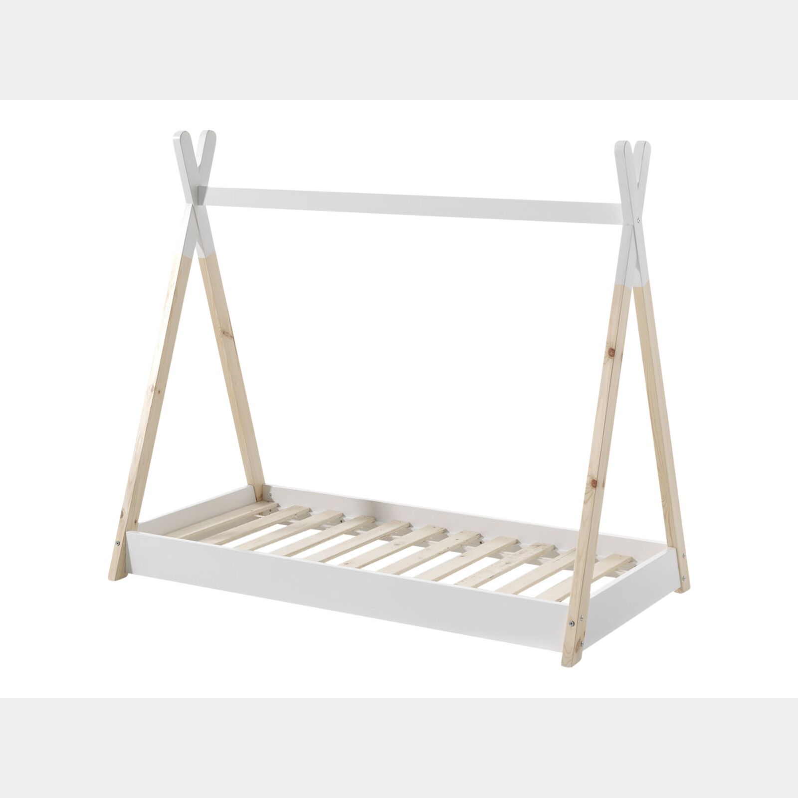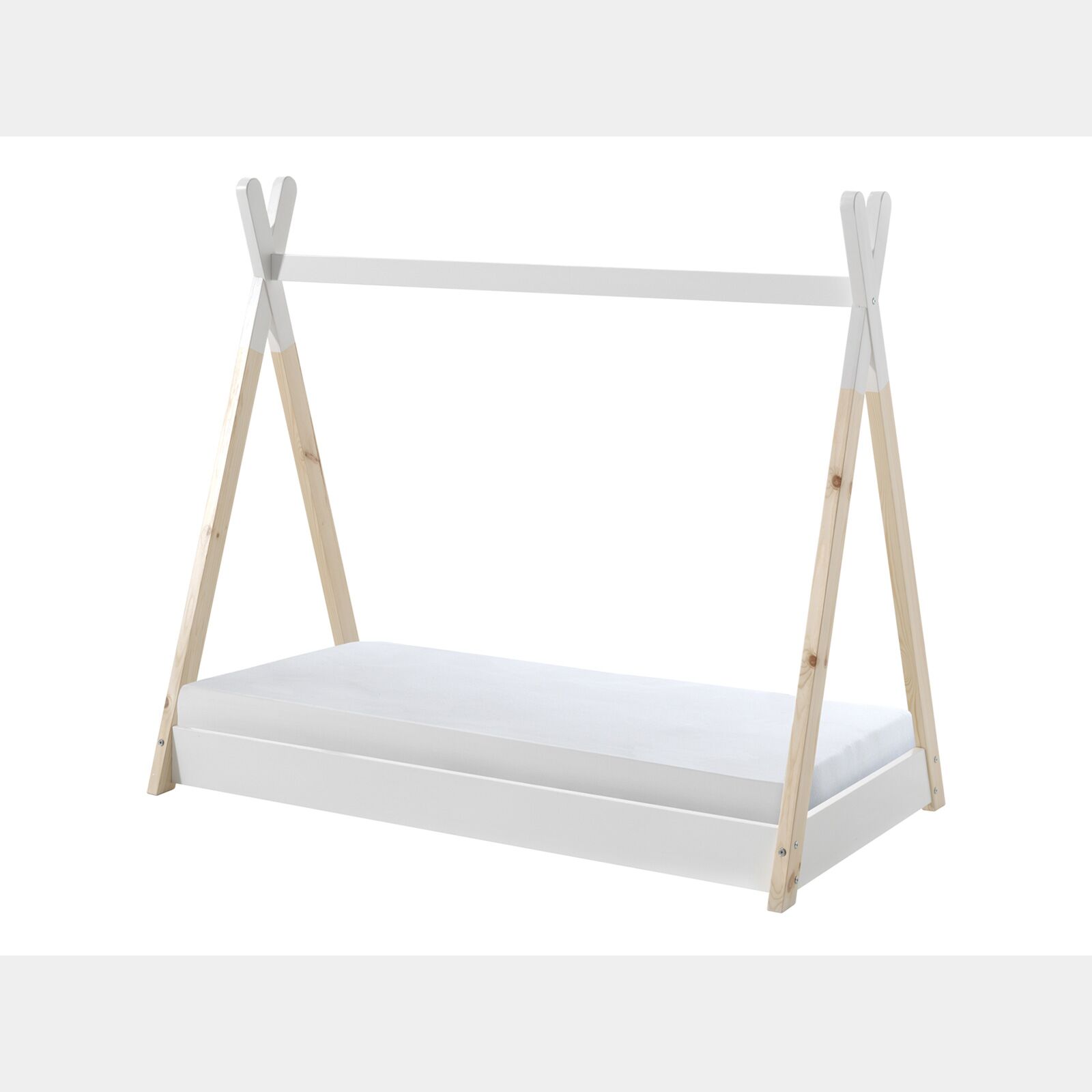 Il letto montessoriano è laccato bianco e naturale, è realizzato in pino massello. I bambini adorano il design giocoso. Questo letto offre tantissime possibilità di decorarlo con ghirlande di luci o altri accessori colorati per creare il letto dei sogni del tuo bambino!