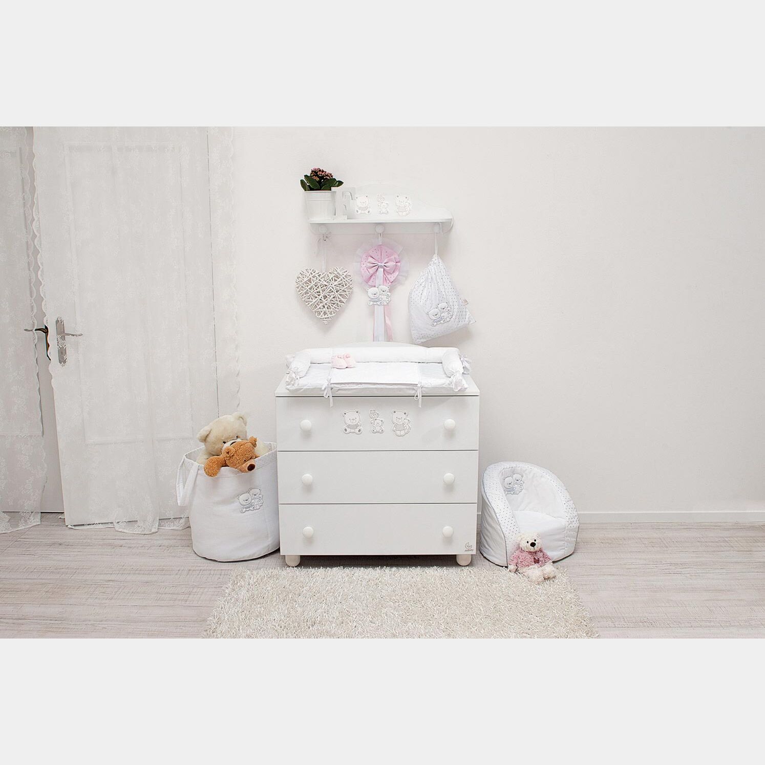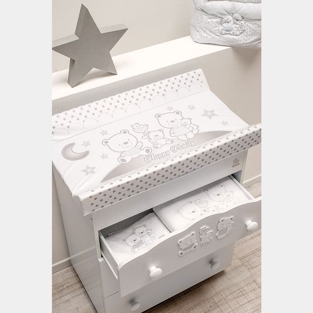 Il fasciatoio tessile è sfoderabile con cerniere, fodere trapuntate e imbottite, traversa salva pipì.