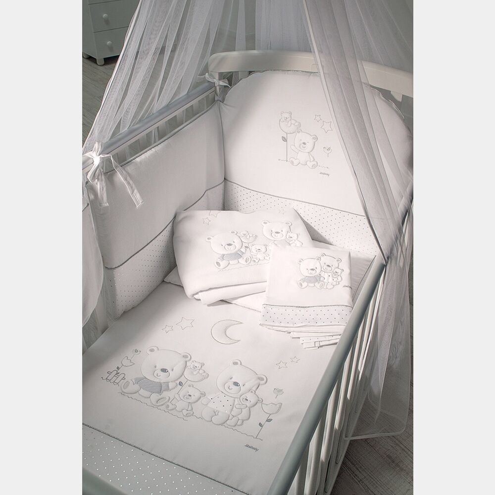 • SET PIUMONI: composto da federa per guanciale, paracolpi 3 lati, sacco copripiumino, piumino in fibra