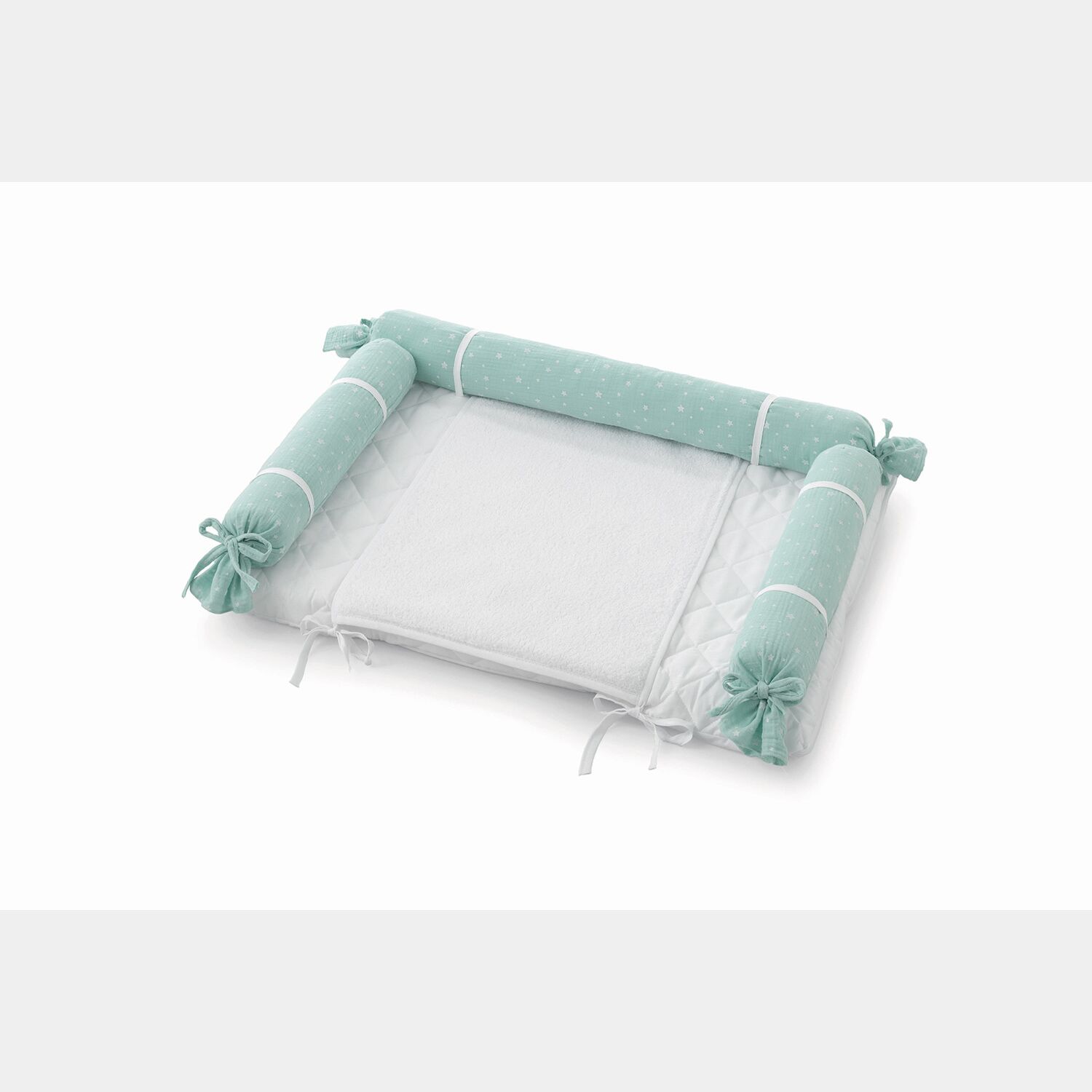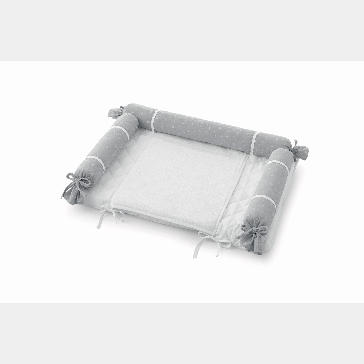 Al bagnetto è possibile aggiungere il fasciatoio tessile dotato di elastici angolari per il fissaggio e traversa salva pipì.
