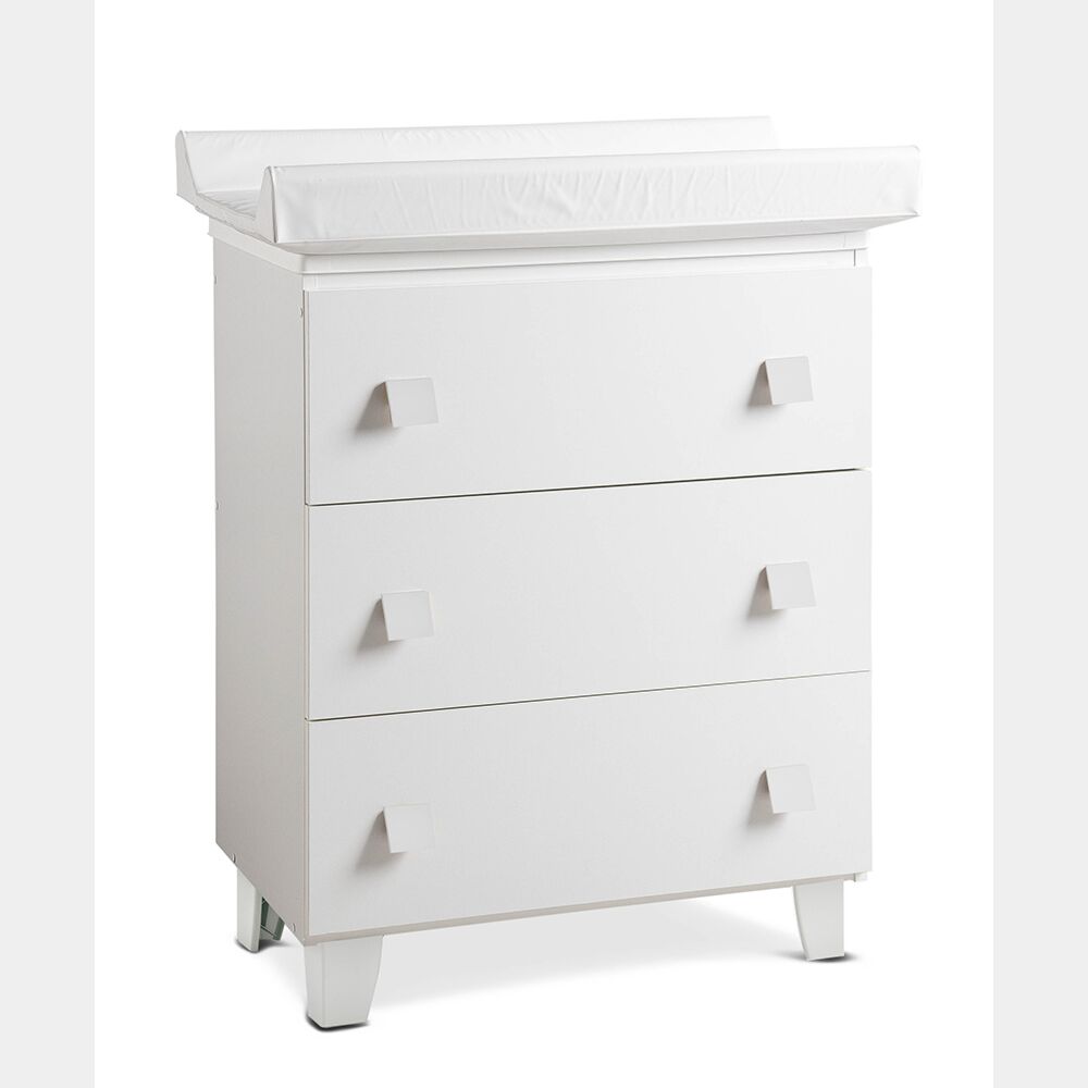 Il bagnetto è dotato di vaschetta a 2 posizioni, tubo di scarico, fasciatoio in pvc con 2 sponde bianco, angoli top gommati e arrotondati, cassetti con chiusura soft close e cerniere posteriori a rallentamento.