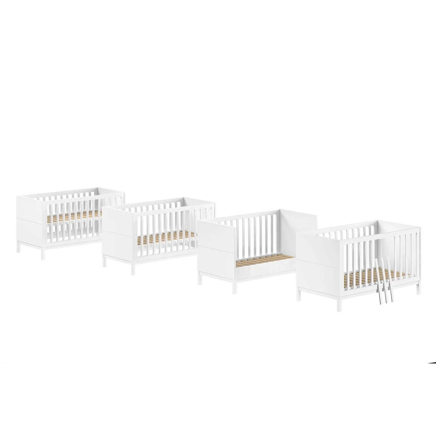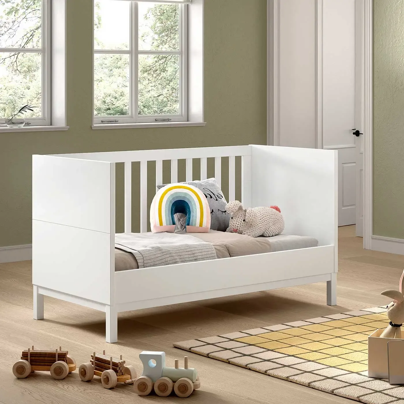 Il lettino per bambini Bianco è progettato per chiunque ami la semplicità e la funzionalità senza compromettere lo stile. La rete a doghe è regolabile su 3 altezze e c'è la possibilità di rimuovere 3 sbarre. Ciò che rende unico questo letto è che un lato può essere rimosso per adattarsi alle esigenze del bambino in crescita.