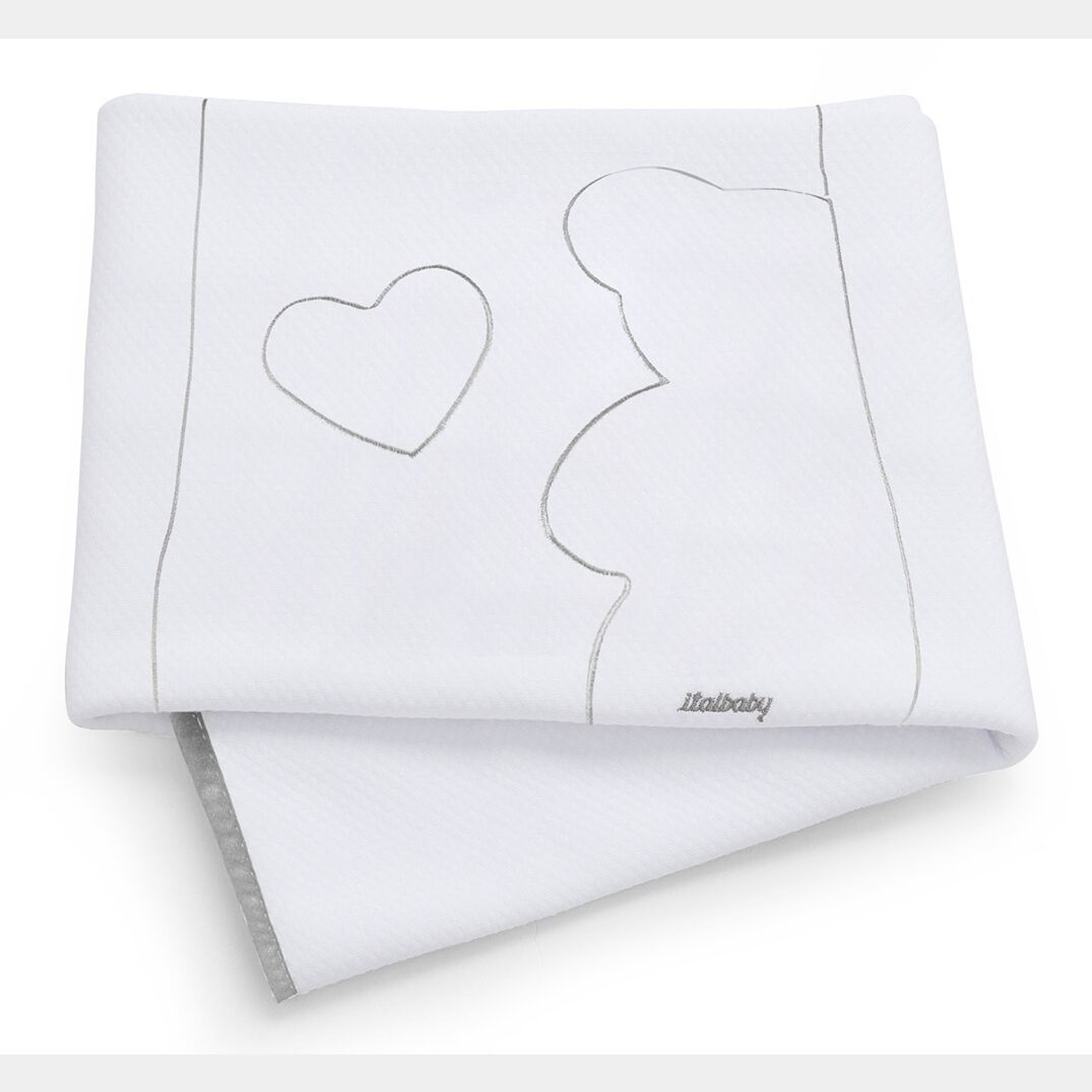 - La copertina in pile bianca ricamata bordata o quella in contone piquè 100%: L.110 P.150 cm