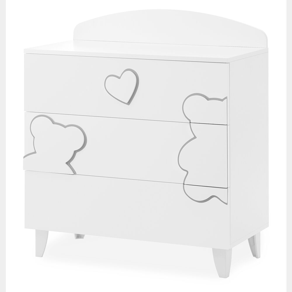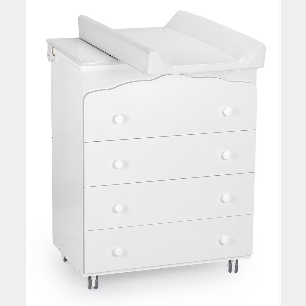 Il bagnetto è dotato di vaschetta a 2 posizioni, tubo di scarico, fasciatoio in pvc con 2 sponde bianco, kit piedini e ruote compresi, cassetti con apertura push-pull e cerniere posteriori a rallentamento.