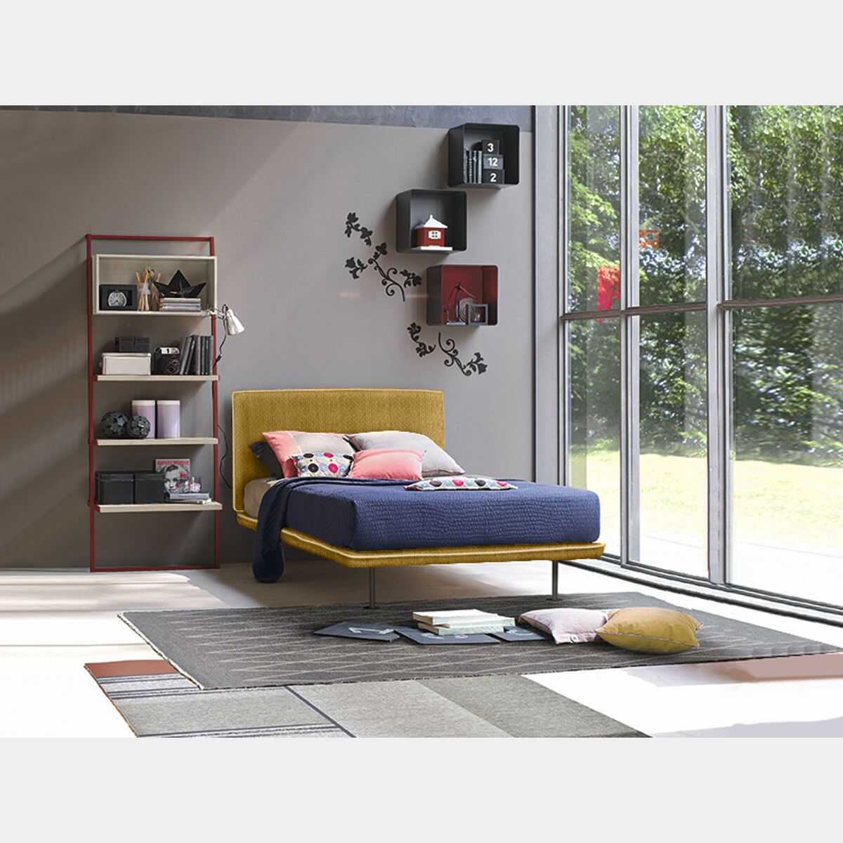 L'ampia scelta di colorazioni consente ad ogni ragazzo di ottenere un letto ad una piazza e mezza in una finitura che più si avvicina ai propri gusti. A disposizione vi sono finiture in tessuto neutre o colorate oppure ecopelle.