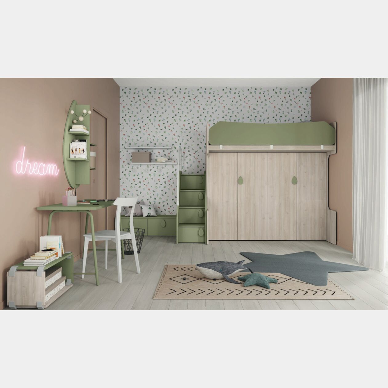 Letti a castello 1 posto letto e un armadio, Papaya e Oliva